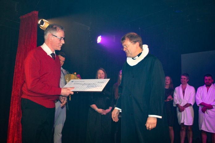 Þann 27. janúar sl. afhenti Lionsklúbbur Hveragerðis Leikfélaginu í Hveragerði fjárstyrk í tilefni 70 ára afmælis þess síðarnefnda. Var það gert í lok frumsýningar verksins Naktir í náttúrunni (Full Monty).