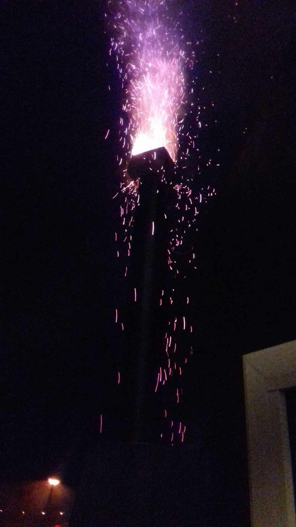 Slökkviliðsmenn notuðu hitamyndavélar til að ganga úr skugga um að eldur væri ekki til staðar og að hættan væri liðin hjá. Eldur sem þessi myndast vegna sóts sem hleðst inn í rörið og í því getur komið upp eldur við réttar aðstæður.