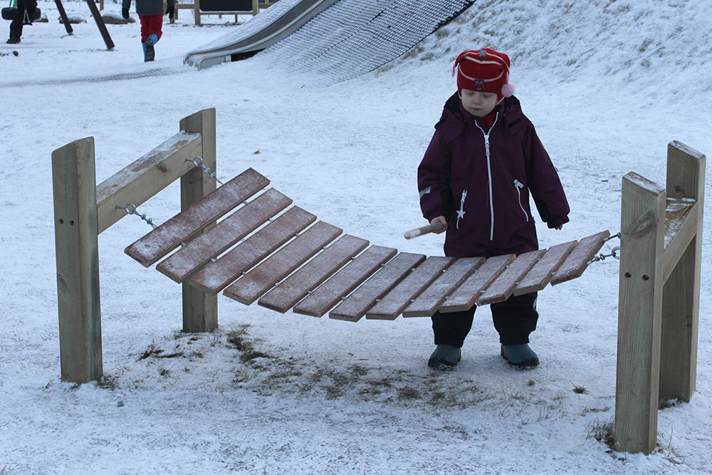 Lóðin sem er rétt tæpir 7.000 fermetra að stærð var hönnuð af Landhönnun eða Hermanni Ólafssyni. Við hönnun hennar var stuðst við megin þemað „Listamannabærinn Hveragerði“. Á lóð eru m.a. útihljóðfæri, einkum til ásláttar s.s. steinar, trédrumbar og málmrör. Einnig verður malbik skreytt með lituðum flötum með listatengdar tilvísanir. Á lóðinni eru hefðbundin leiktæki auk þess sem þar eru sleðabrekka, gróðurlundir, leikhús matjurtagarður o.fl. Timburpallar eru utan við allar deildir. Á lóðinni eru þrjú smáhýsi fyrir geymslu leiktækja, hjóla og vagna. Einnig eru þar opin skýli fyrir hjól, vagna og sorp.