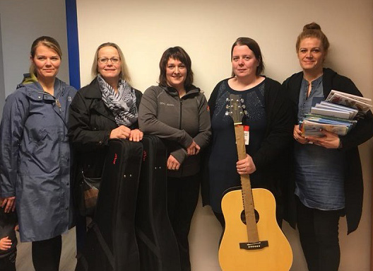 Kvenfélagið Bergþóra í Vestur-Landeyjum kom færandi hendi í Leikskólann Örk á Hvolsvelli þann 10. janúar sl. með þrjá gítara, gítartöskur og önnur hljóðfæri. Kvenfélagið færði leikskólanum einnig bækur um tónlist sem og nokkrar aðrar bækur.