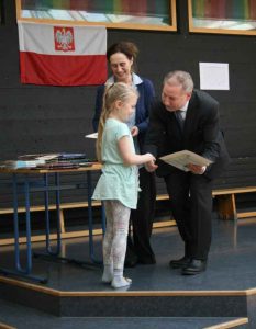 Gerard og Margherita færðu hverju barni bókagjöf, auk þess sem Vallaskóli fékk að gjöf pólskar námsbækur. Auk nemenda sóttu foreldrar, kennarar og fulltrúar sveitarfélagsins samkomuna sem var með hátíðarblæ. Eftir athöfn í sal var boðið upp á hressingu í mötuneytinu.