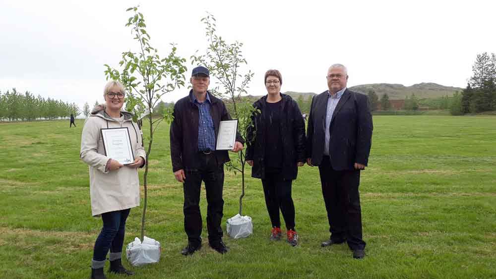 Umhverfisverðlaun Flóahrepps voru afhent á þjóðhátíðardaginn á útivistarsvæði Umf. Þjótanda við Einbúa en þar fóru hátíðarhöldin fram. Í ár fengu verðlaunin Elfa Kristinsdóttur og Jakob Viðar Ófeigsson, Rimum 6, fyrir lögbýli og Ölvisholt brugghús, fyrir skemmtilega útfærslu á nýrri gestastofu. Árni Eiríksson, oddviti Flóahrepps, veitti verðlaunin á hátíðinni, sem atvinnu- og umhverfisnefnd Flóahrepps tilnefndi.