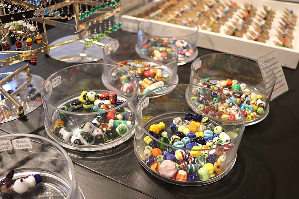 Aðspurð um sérstöðu verslunarinnar segir Fanndís: „Hér inni er hver einasti hlutur handgerður af mér. Glerið er unnið hér inni á litlu verkstæði fyrir innan og engar perlur eru algerlega eins. Ferðamenn sem hingað koma eru mjög ánægðir að komast í beina tengingu við framleiðanda munanna. Það er mikilvægur hluti af þeirra upplifun. Það er kannski meiri saga á bakvið munina og það skiptir máli. Ferðafólkið sér að þetta er unnið af mér og er því gegnheilt íslenskt handverk.“ Aðspurð um íslenska viðskiptavini segir hún: „Íslendingarnir eru að uppgötva þetta og fara að átta sig á að það eru ekki allar glerperlur frá Kína,“ segir hún og brosir kankvís. „Það er kannski örlítið fjarstæðukennt að það sé til Íslendingur sem er að handgera svona perlur og muni, en þetta vinnur sig inn hjá fólki og ég finn fyrir auknum áhuga.“