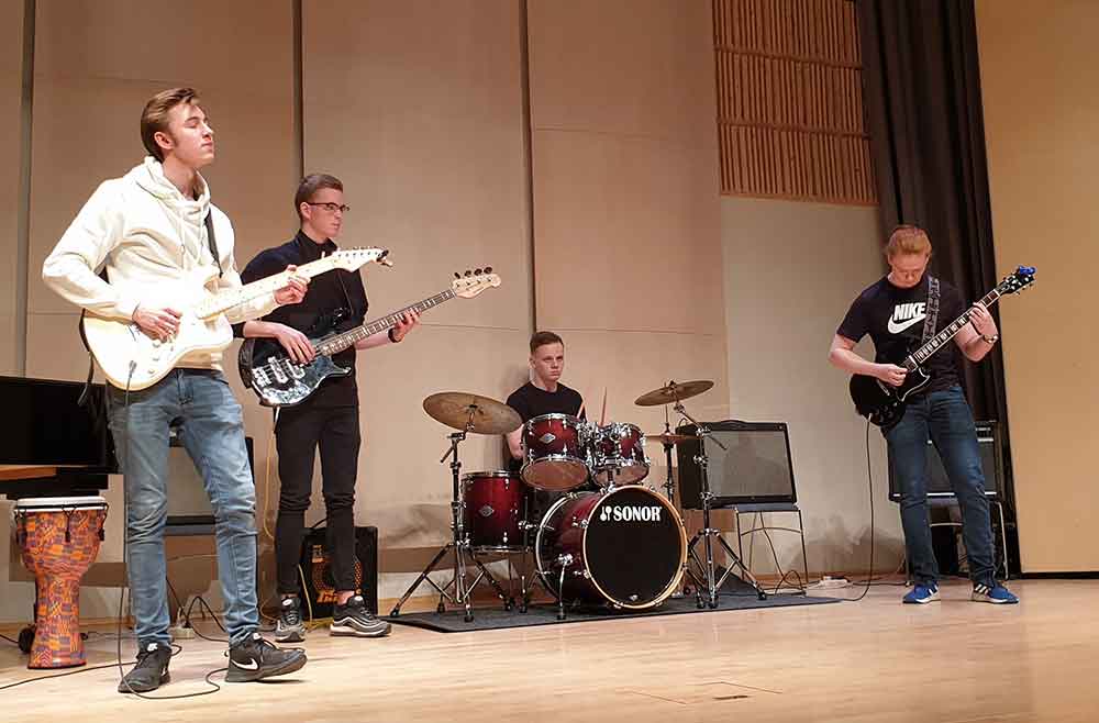 Rytmasveitin No Sleep, en hana skipa Gylfi Þór Ósvaldsson rafgítar, Jakob Unnar Sigurðarson rafbassi, Valgarður Uni Arnarson rafgítar og Þröstur Ægir Þorsteinsson trommur. Þeir leika lagið Something eftir George Harrison.