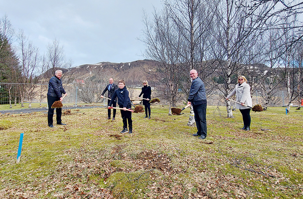 Tekin var skóflustunga að nýrri viðbyggingu við Grunnskólann í Hveragerði þann 22. apríl sl. Það var Reirverk ehf. sem átti lægsta tilboðið í verkið eða ríflega 390 m. kr. Aldís Hafsteinsdóttir, bæjarstjóri Hveragerðisbæjar og Rannveig Eir Einarsdóttir frá Reirverki sátu í tveggja metra fjarlægð hvor frá annarri við undirritun verksamningsins. Samkomutakmarkanir og tveggja metra reglan settu svip sinn á samkomuna. Þrátt fyrir það var veðrið með besta móti og gleði var með framkvæmdirnar en þær eru með stærri framkvæmdum sem sveitarfélagið hefur ráðist í.