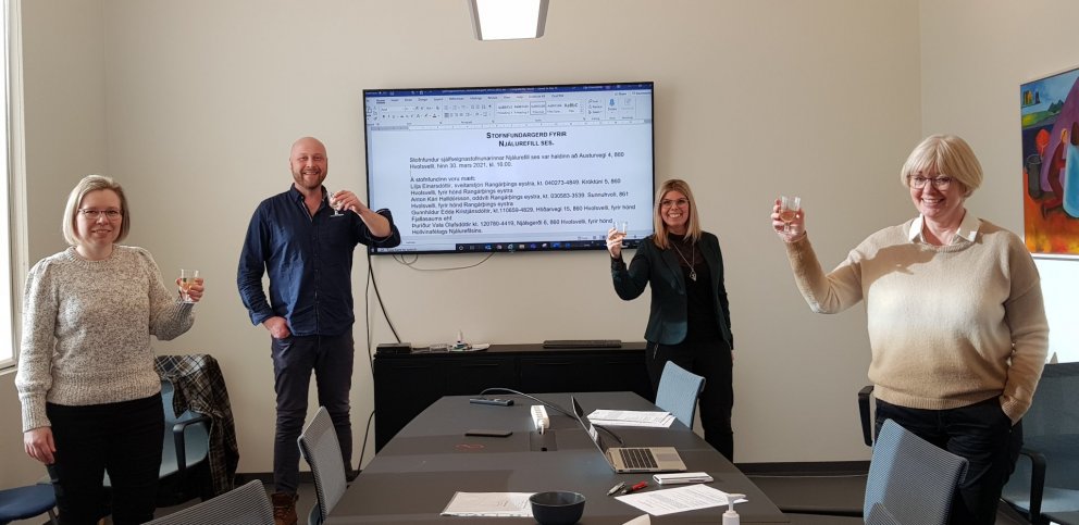 Það var mikil gleði að loksins sé búið að stofna félagið og á fyrsta stjórnarfundinum var skálað fyrir góðri framtíð Njálurefilsins.