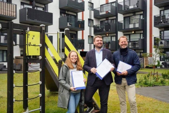 Skrifað var undir viljayfirlýsingu um fjármögnunina í gær. Ásmundur Einar Daðason, félags- og barnamálaráðherra, Björn Traustason, framkvæmdastjóri Bjargs leigufélags, og Anna Guðmunda Ingvarsdóttir, aðstoðarforstjóri HMS undirrituðu viljayfirlýsinguna.