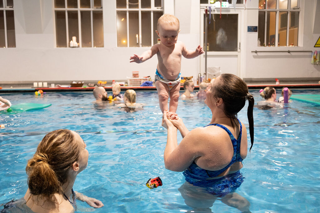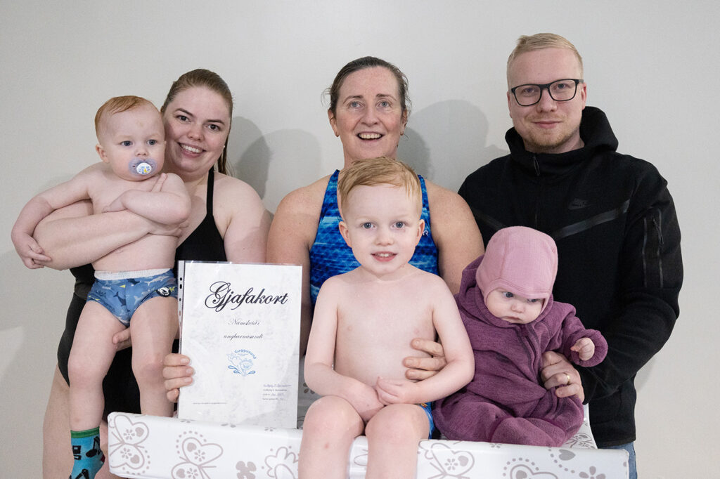 Síðasta vor fæddist svo fyrsta barnabarn Guðbjargar og nú er hann farinn að koma á námskeið hjá ömmu sinni. Auk þess að fara á námskeið fer hann reglulega með henni í sund og eiga þau góðar stundir saman í lauginni.