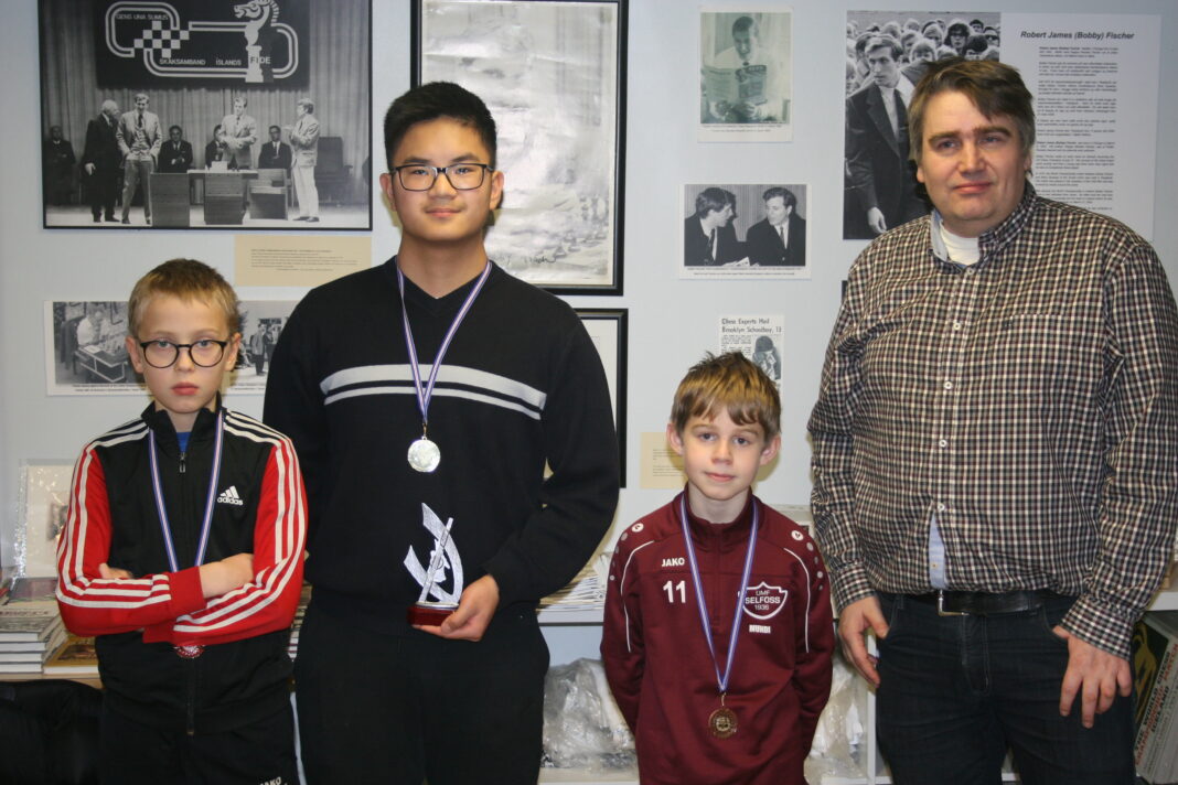 Sunnudaginn 12. des. sl. var síðasti kennsludagur skákkennslu grunnskólabarna í Fischersetri. Þetta var síðasti tíminn af 8 skipta námsskeiði, sem byrjaði í september sl. Rúmlega 20 krakkar tóku þátt í námsskeiðinu og sáu Oddgeir Ágúst Ottesen og Ingimundur Sigurmundsson frá Skákfélagi Selfoss og nágrennis um kennsluna. Í síðustu kennslustundinni var blásið til skákmóts og úrslitin urðu þau að Grímur C. Ólafsson sigraði með 6v. af 6 mögulegum og Magnús Tryggvi Birgisson og Sigurmundur Ari Gunnþórsson urðu jafnir með 5v., en þar sem Magnús Tryggvi hafði teflt við sterkari andstæðinga hlaut hann annað sætið og Sigurmundur Ari það þriðja.