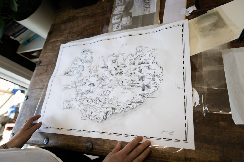 Þetta litla póstkort vatt á endanum svo uppá sig að í dag hefur Jana lífsviðurværi sitt af því að teikna. „Eftir að ég hætti í Þórsmörk var ég að hjálpa til við þrif í Skálakoti en ég þurfti að hætta því því ég hafði allt of mikið að gera. Ég er að gera póstkort, litlar myndir, panorama myndir, Íslandskortin og núna nýlega voða fín kort á striga og er síðan að fá sýnishorn af stuttermabolum með teikningunum mínum á.“ Í ofanálag er Jana að gera tattoo og mun opna stúdíó á Hvolsvelli á næstunni. Það er þó langt frá því að þetta sé nóg fyrir Jönu, en hún er með ýmislegt á prjónunum sem við getum vonandi fengið að fylgjast með í nákominni framtíð.