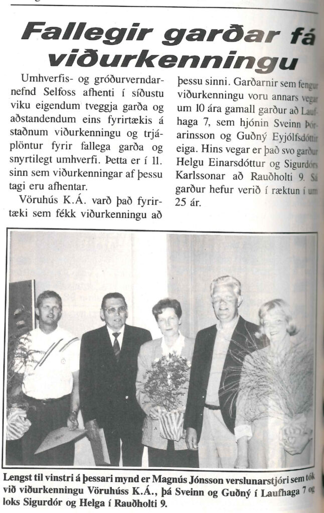Hjónin Helga R. Einarsdóttir og Sigurdór Karlsson á Selfossi hlutu um helgina viðurkenningu fyrir fallegasta garðinn í Árborg og það í annað sinn.