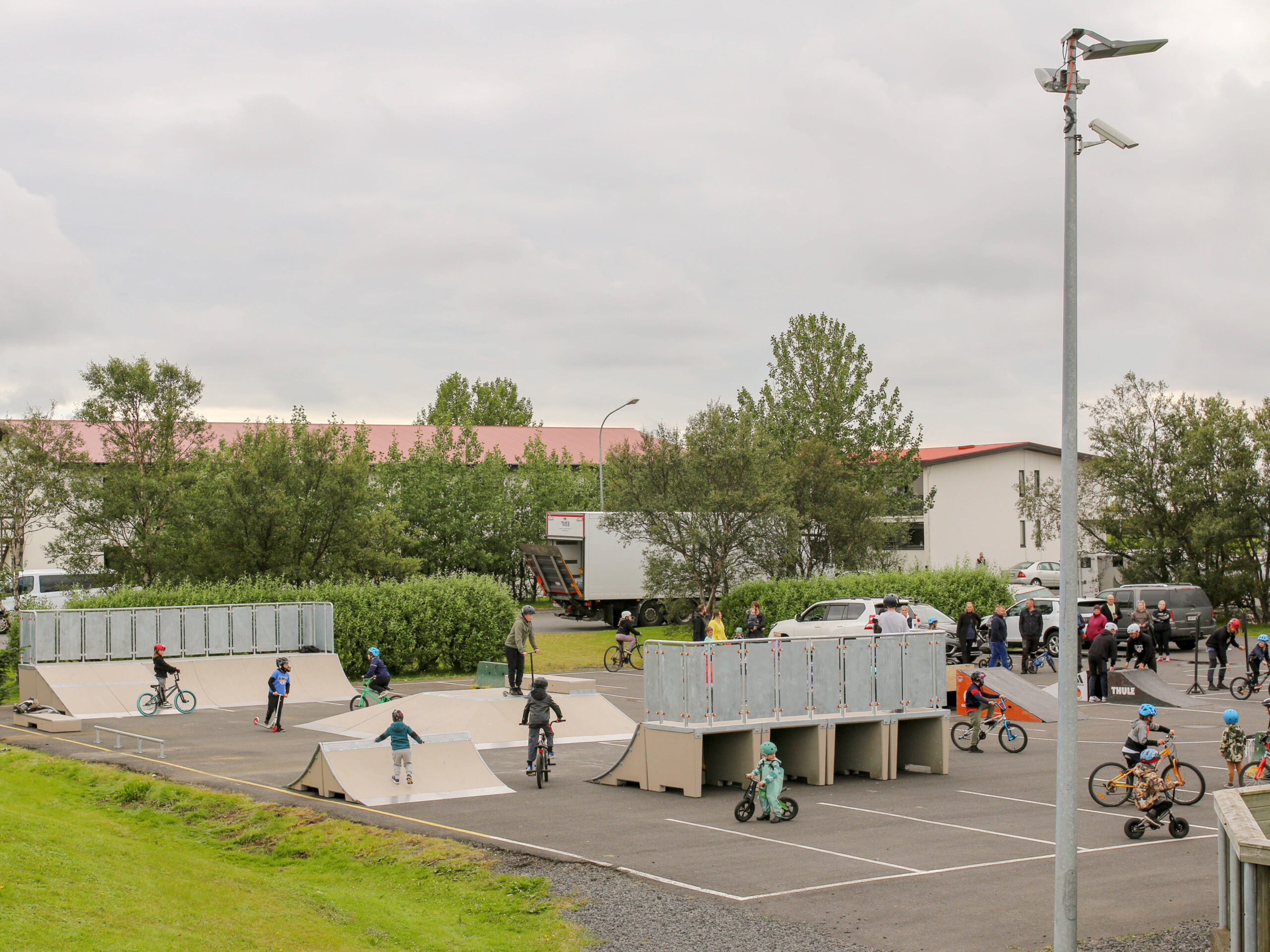 Brettagarður var opnaður á Hellu og er hann staðsettur við íþróttahúsið á Hellu. BMX Brós komu og héldu sýningu og kennslu sem var virkilega vel sótt. Mynd: Rangárþing Ytra