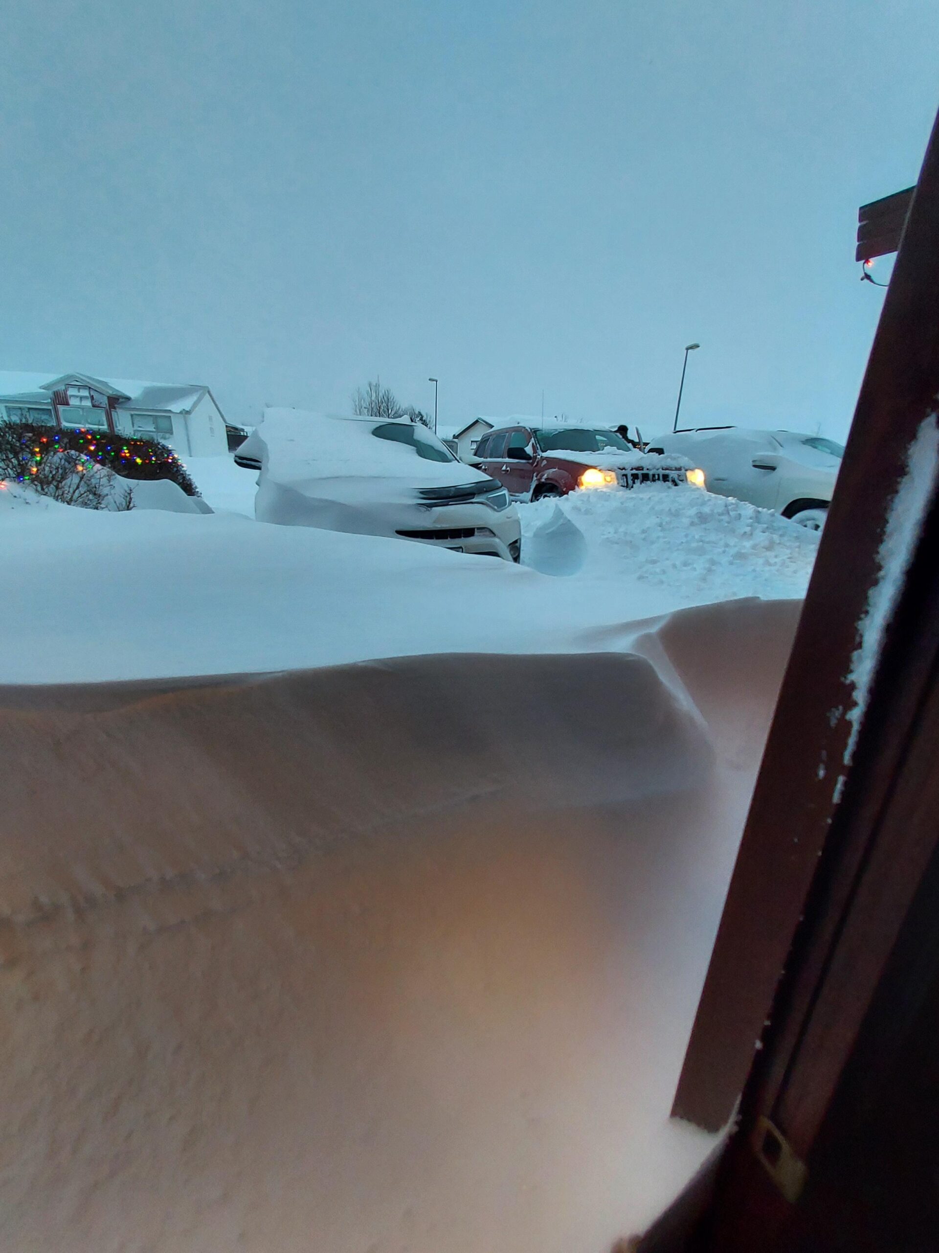 Já, þetta eru semsagt bílar þarna undir öllum snjónum. Mynd: Linda Margrét Jafetsdóttir.