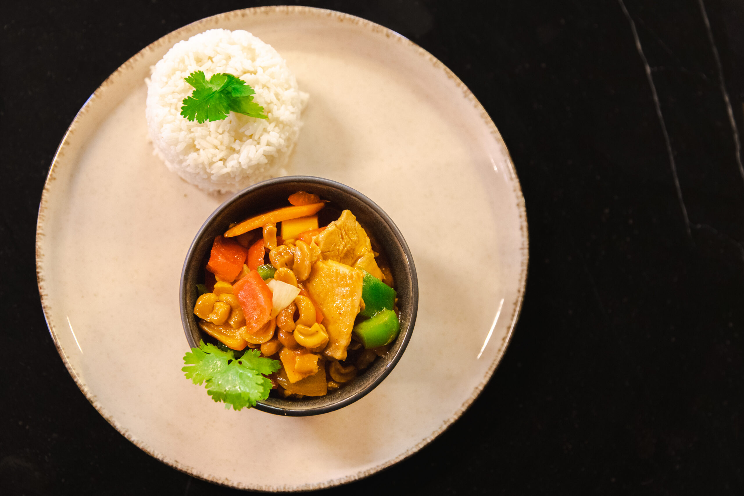 kjúklingur, original vorrúllur, pad thai með risarækjum eða kjúkling og kjúklingur í kasjú.“