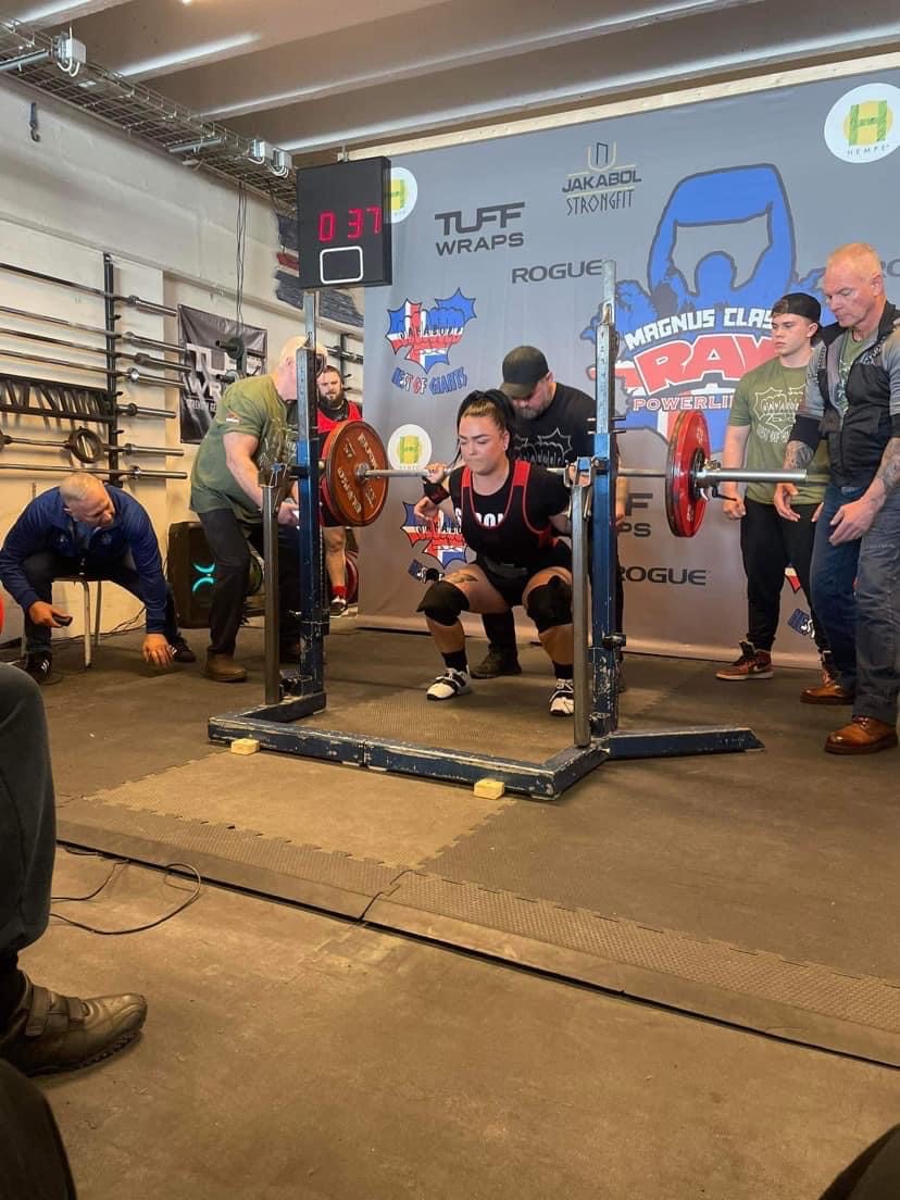 Ellen, sem vinnur hjá Ás Styrktarfélagi, er lærður naglafræðingur og IACP hundaþjálfari, ásamt því að vera að læra hundasnyrtinn. Hún æfir í Thor´s Power Gym og er búsett í Grafarvogi. „Ég byrjaði að æfa kraftlyftingar í byrjun janúar, ég var eiginlega plötuð í það af Önnu vinkonu minni. Ég var mikið í hestum þegar ég var yngri en hef annars bara svona hoppað í ræktina inn á milli án þess að vera að gera eitthvað af viti. Ég held að þessi árangur sé Tómasi, þjálfaranum mínum að þakka, fyrir að ýta á mig og fara vel yfir allar æfingar og tæknina. Svo hef ég alltaf verið hraust og þegar ég prófaði kraftlyftingar fann ég að þetta var eitthvað sem ég hafði áhuga á, ég elska að mæta á æfingar og það skilar árangri. Ég lít mikið upp til Lystus Ebosele og finnst hún sjúklega svöl! Anna Kristín æfingafélagi minn er mikil fyrirmynd hjá mér og stór ástæða fyrir því afhverju ég er í þessu sporti,“ segir Ellen í samtali við Dagskrána.