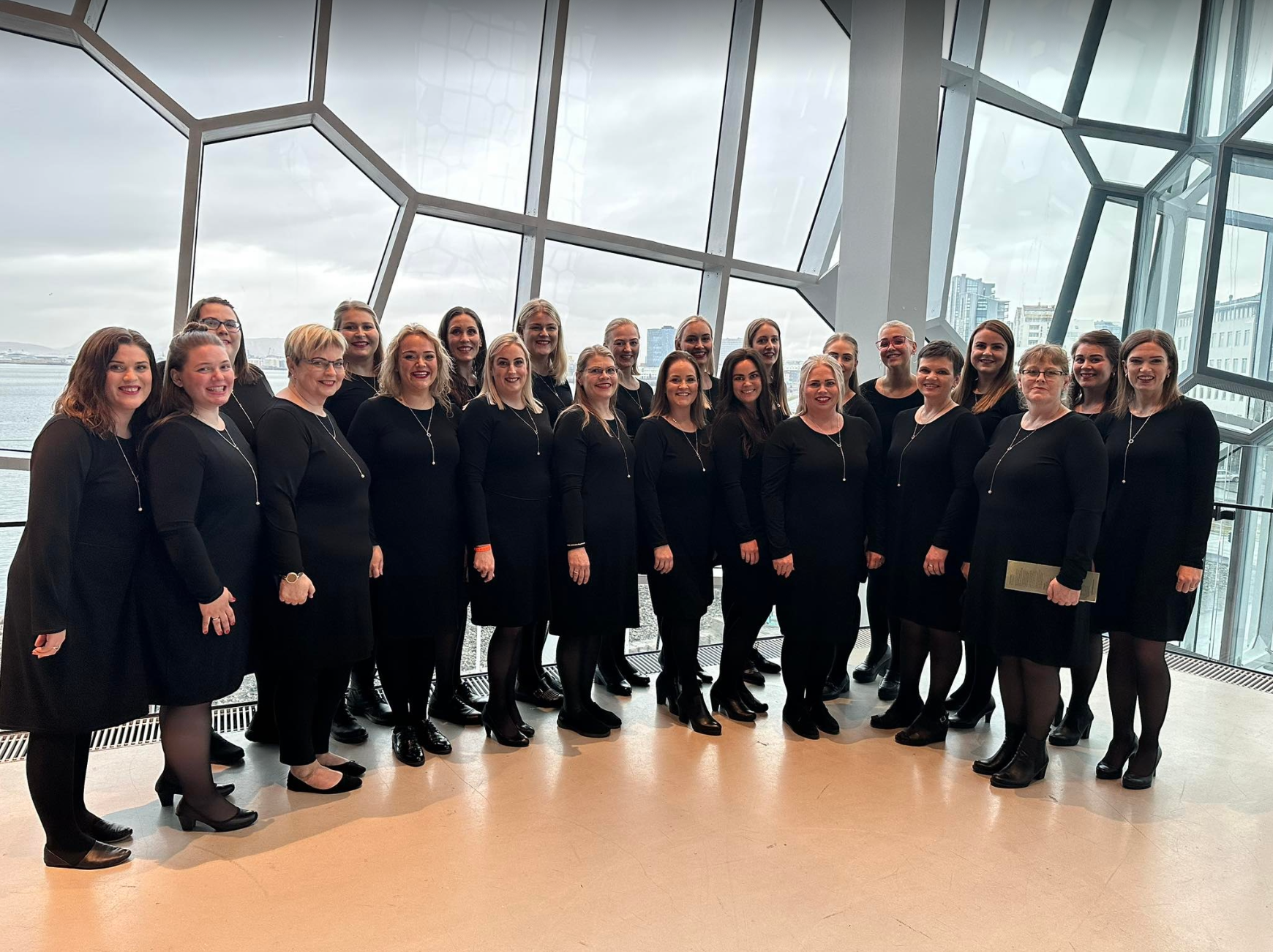 Kórkonur kátar eftir frábæra tónleika í Eldborg.