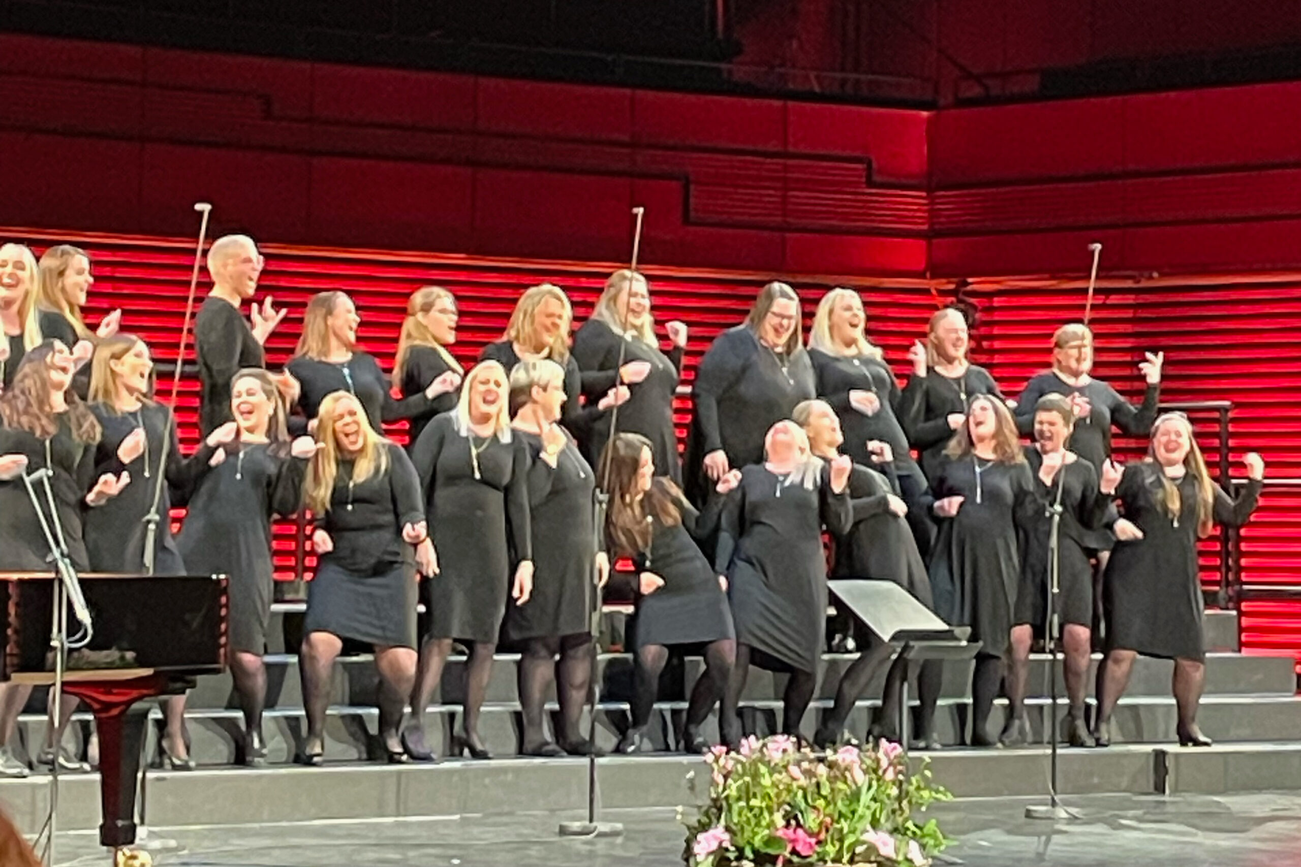 „Sat í Eldborgarsal Hörpu og hlýddi á kvennakóra landsins – verð að segja að þessar flottu konur voru hreint frábærar. En að öllum öðrum ólöstuðum þá fannst mér Kvennakór Hornafjarðar, Jórukórinn (sérstaklega í gamla góða Mánalaginu Villi verkamaður) og Kvennakór Ísafjarðar standa upp úr. Þetta er svo mynd tekin af (luft)gítarsólói Jórukórsins í Villi verkamaður sem þær fluttu svo snilldarlega.“ hafði einn tónleikagestur á orði í færslu á Instagram undir meðfylgjandi mynd af kórkonum í miðju sólói.