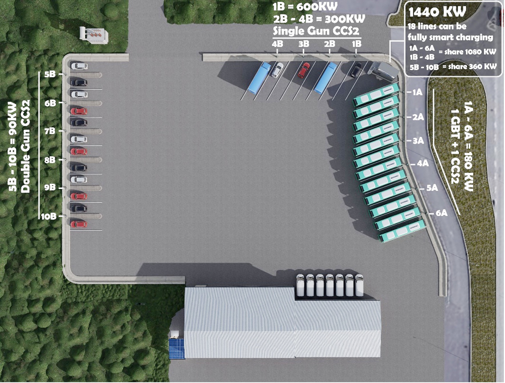GTS hefur pantað 1440 kw hleðslustöð sem verður sett upp að Fossnesi 7 sem er við hlið höfuðstöðva fyrirtækisins á Selfossi. Framkvæmdir eru hafnar á lóðinni fyrir uppsetningu á hleðslustöðinni sem er áætlað að verði tilbúin síðar á árinu. Þar verður hægt að hlaða allt að 30 bíla, stóra sem smáa og verður stöðin öllum opin. Hleðslutenglar verða 90 kw, 180 kw, 300 kw og 600 kw. Þetta verður öflugasta hleðslustöð landsins til þessa með hraðari hleðslu en þær sem fyrir eru. Hleðslustöð þessi er hönnuð af starfsmönnum YES-EU AS í Noregi og á Íslandi og sérstaklega hugsuð sem blandaða notkun á köldum svæðum. Hægt er að forgangsraða hleðslum og stýra raforkunni með hugbúnaði til að nýta orkuna sem best.
