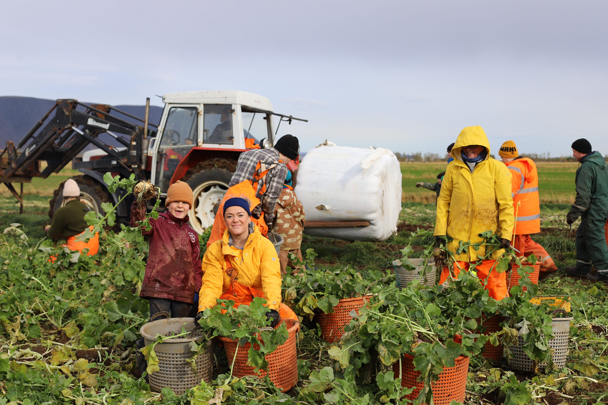 Fjóla þiggur alla hjálp sem hún getur fengið við uppskeruna, enda er þetta framtakssama áhugamál ekki smátt í sniðum. „Ég auglýsi alltaf eftir fólki í upptöku. Það er öllum velkomið að vera með og ekki er gerð nein krafa um að vera allan tímann. Það hefur aukist mikið að fjölskyldur séu að koma í 1-2 klst, taka upp rófur og fá rófur með sér heim að launum. En ég hef einnig verið að borga smá laun fyrir þau sem vilja koma og vinna sér inn smá auka pening. Við kláruðum að taka allt upp um síðustu helgi, en uppskeran í ár var 32 sekkir, eða 24 tonn, sem er vel yfir meðallagi, þrátt fyrir að sumarið hafi verið þurrt, ég hafi sáð seint og minna en oft áður. Ég tók loforð af pabba áður en hann dó um að hann yrði áfram með mér í rófunum og við systurnar erum handvissar um að þessi ríkulega uppskera sé honum að þakka.“