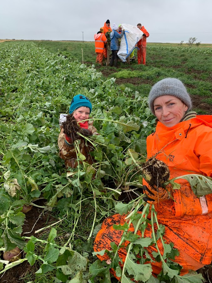 En hvernig hefur þróunin verið á þeim árum sem Fjóla hefur verið í rófubransanum? „Þeir sem rækta rófu hafa flestir stækkað við sig. Í dag eru færri að rækta og þeir rækta þeim mun meira. Mér finnst einnig vera smá kynslóða-uppfærsla og ég hef t.d. fengið tæki lánuð frá Sævari í Arabæ. Hann er með mun stærri ræktun en ég. Hann á því tæki og tól sem ég get ekki fjárfest sjálf í og fæ lánað 1x á ári hjá honum til að einfalda vinnuna. Mér finnst rófubændur vera lítið samfélag og ef það er beðið um aðstoð eða ráð eru menn tilbúnir að hjálpa eins og hægt er.“