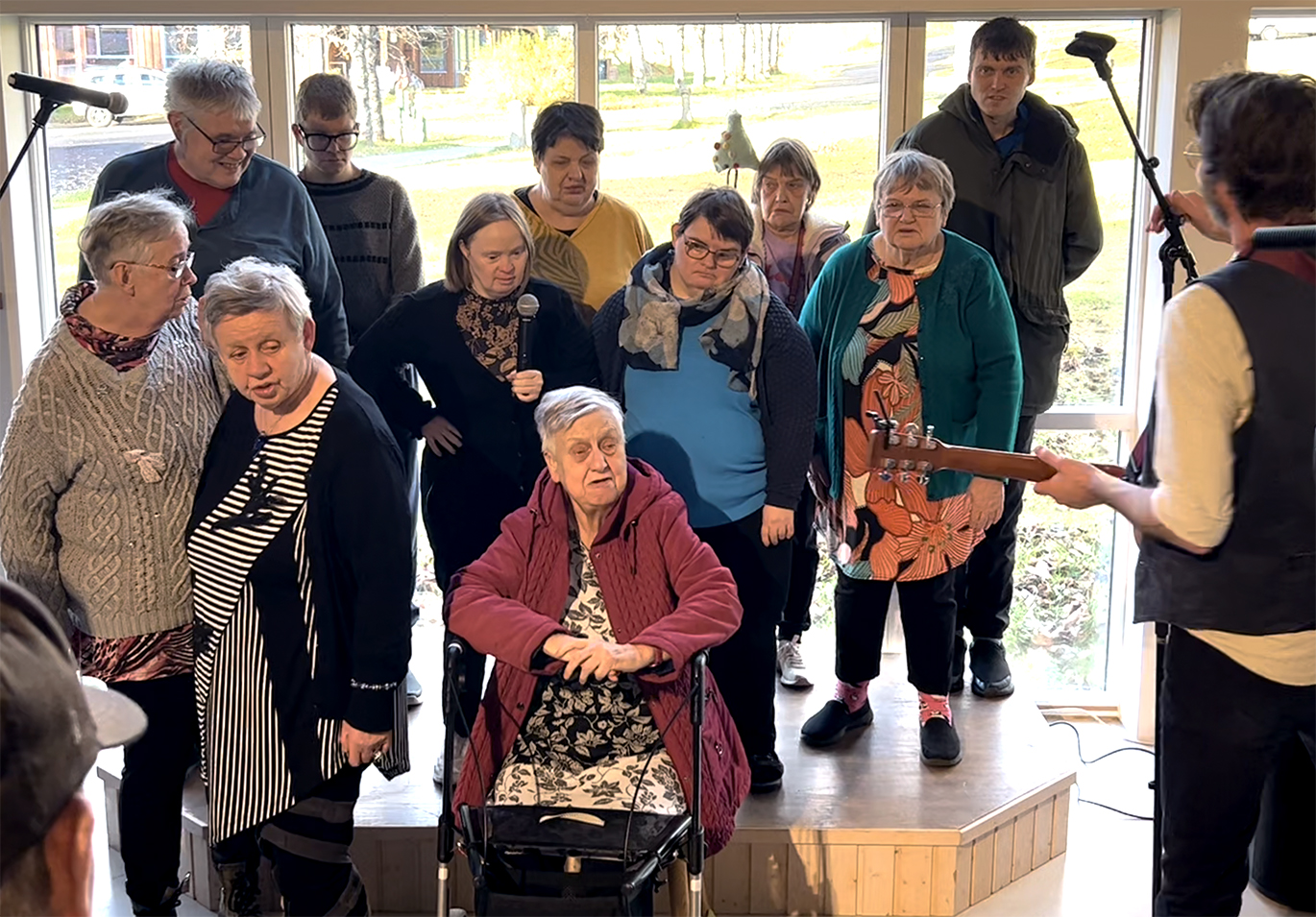 Freyr Friðriksson, eigandi KAPP ehf tók svo til máls og afhenti styttuna formlega en hún var áður í eigu KAPP. Kór Sólheima söng afmælissönginn og nokkur lög til viðbótar við góðar undirtektir.