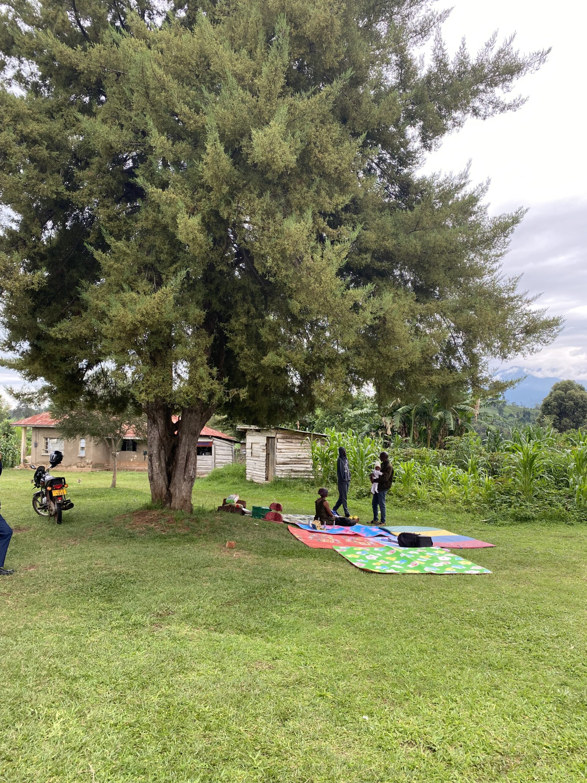Aðspurð um fyrsta vinnudaginn segist Ástrós hafa mætt til Fort Portal á fimmtudegi eftir tæplega eins og hálfs sólarhrings ferðalag. „Sem betur fer átti ég ekki að byrja að vinna fyrr en á mánudeginum og gat því jafnað mig eftir ferðalagið og áttað mig aðeins á lífinu hérna í Fort Portal. Strax á fyrsta vinnudegi fór ég, ásamt tveimur öðrum sjúkraþjálfurum, iðjuþjálfa, talmeinafræðing, næringafræðing og flogaveikisteymi í svokallað „outreach“um klukkustund fyrir utan Fort Portal en þá förum við út í samfélagið og veitum þjónustuna okkar í bæjum og smáþorpum hérna í vestur Úganda. Fæstar fjölskyldur hafa tök á að sækja þjónustuna til okkar í Fort Portal og því eru þessi „outreach“ ótrúlega stór og mikilvægur hluti af vinnunni. Ég man að þennan fyrsta vinnudag kom það mér á óvart hversu mikill fjöldi fólks beið eftir okkur á heilsugæslunni í þessum smábæ. Við breiddum út dýnur og teppi þar sem við fundum skugga á lóðinni og fjölskyldurnar settust niður hjá okkur, ýmist til að hitta sjúkraþjálfara/iðjuþjálfa, fá úthlutuð flogaveikislyf, næringarstykki við vannæringu o.fl. Þarna eyddum við svo rúmlega 3 klukkustundum að veita þjónustuna okkar áður en öllu var pakkað aftur saman í bílinn og keyrt af stað heim.“