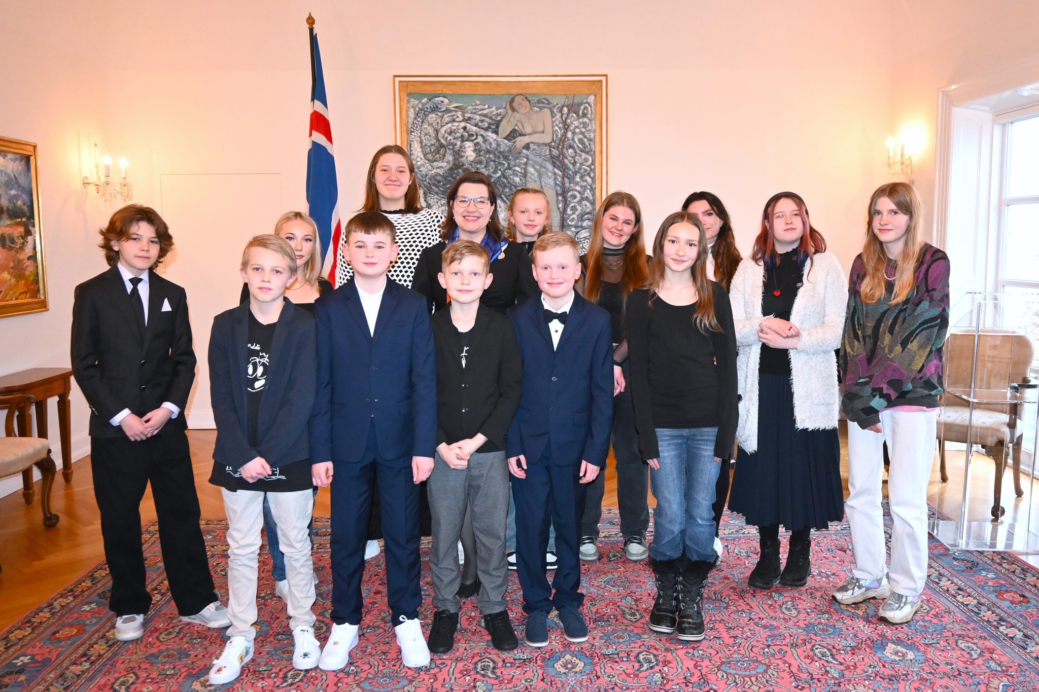 Allir verðlaunahafarnir ásamt Elizu Reid forsetafrú við verðlaunaafhendinguna.
