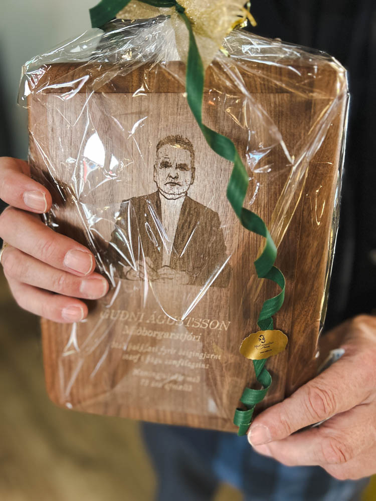 Fjóla St. Kristinsdóttir, bæjarstjóri í Árborg sagði Guðna hafa kallað hana Árborgarstjóra frá því að hún tók við bæjarstjóratitlinum og í kjölfarið hafi hún ákveðið að kalla hann miðborgarstjóra, verandi mikilvægur samfélagsþegn og íbúi í miðbænum. Fjóla afhenti Guðna að gjöf útskorinn skjöld með brjóstmynd af honum sjálfum, miðborgarstjóratitlinum, afmæliskveðju og þökkum fyrir óeigingjarnt starf í þágu samfélagsins.