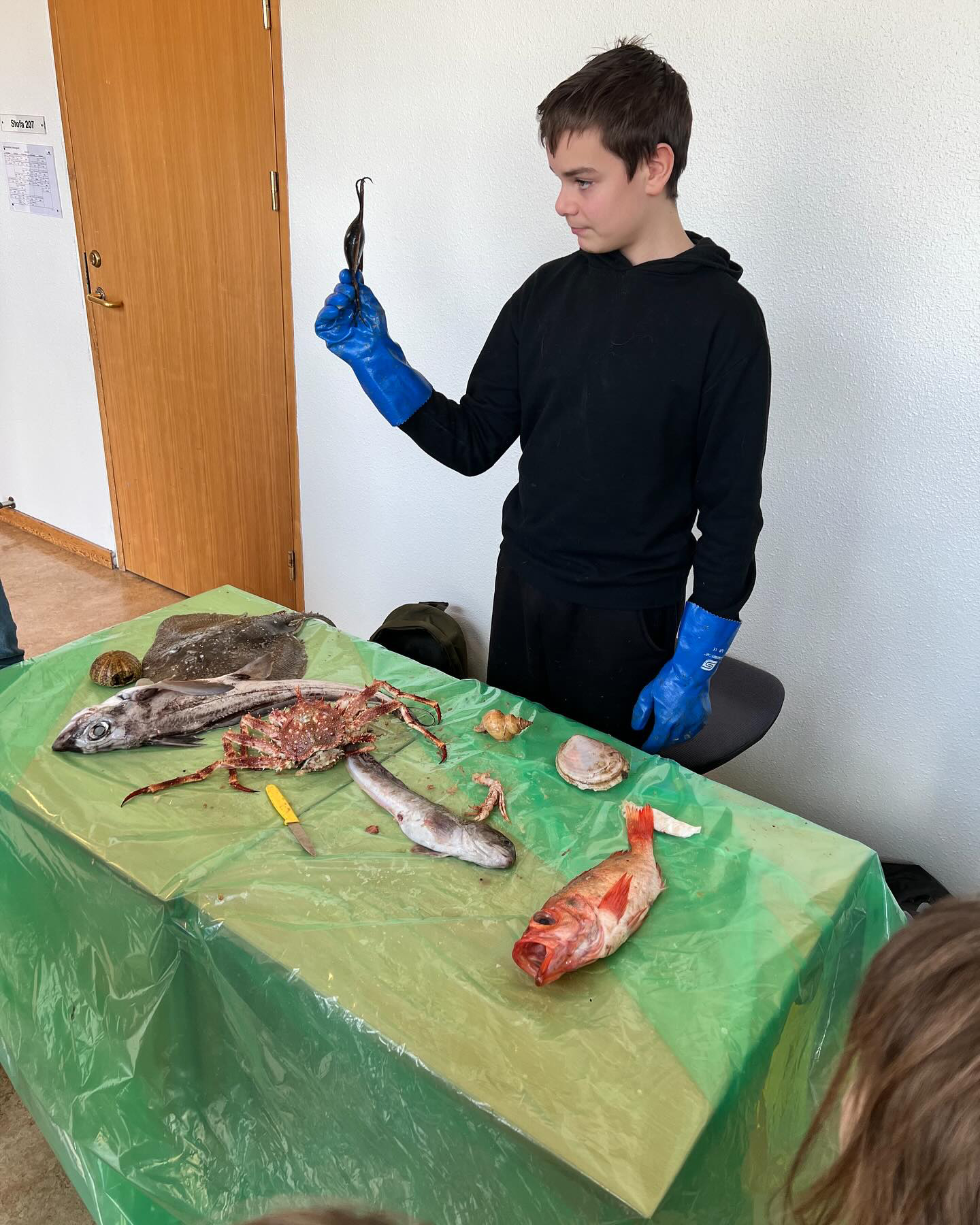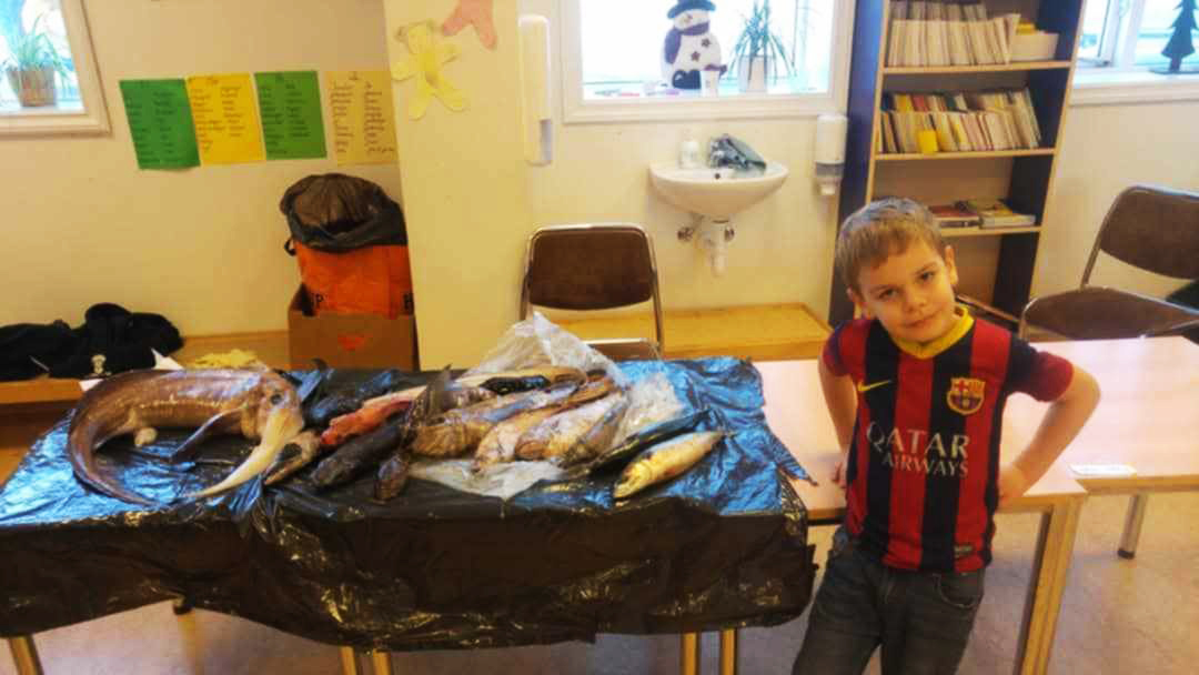 Aron Helgi Eiríksson er nemandi í 8. bekk í Grunnskólanum í Hveragerði sem hefur gríðarlega mikinn áhuga á mismunandi fisktegundum. Hann hefur haldið metnaðarfullar fiskasýningar fyrir nemendur grunnskóla og leikskóla frá því hann var lítill.