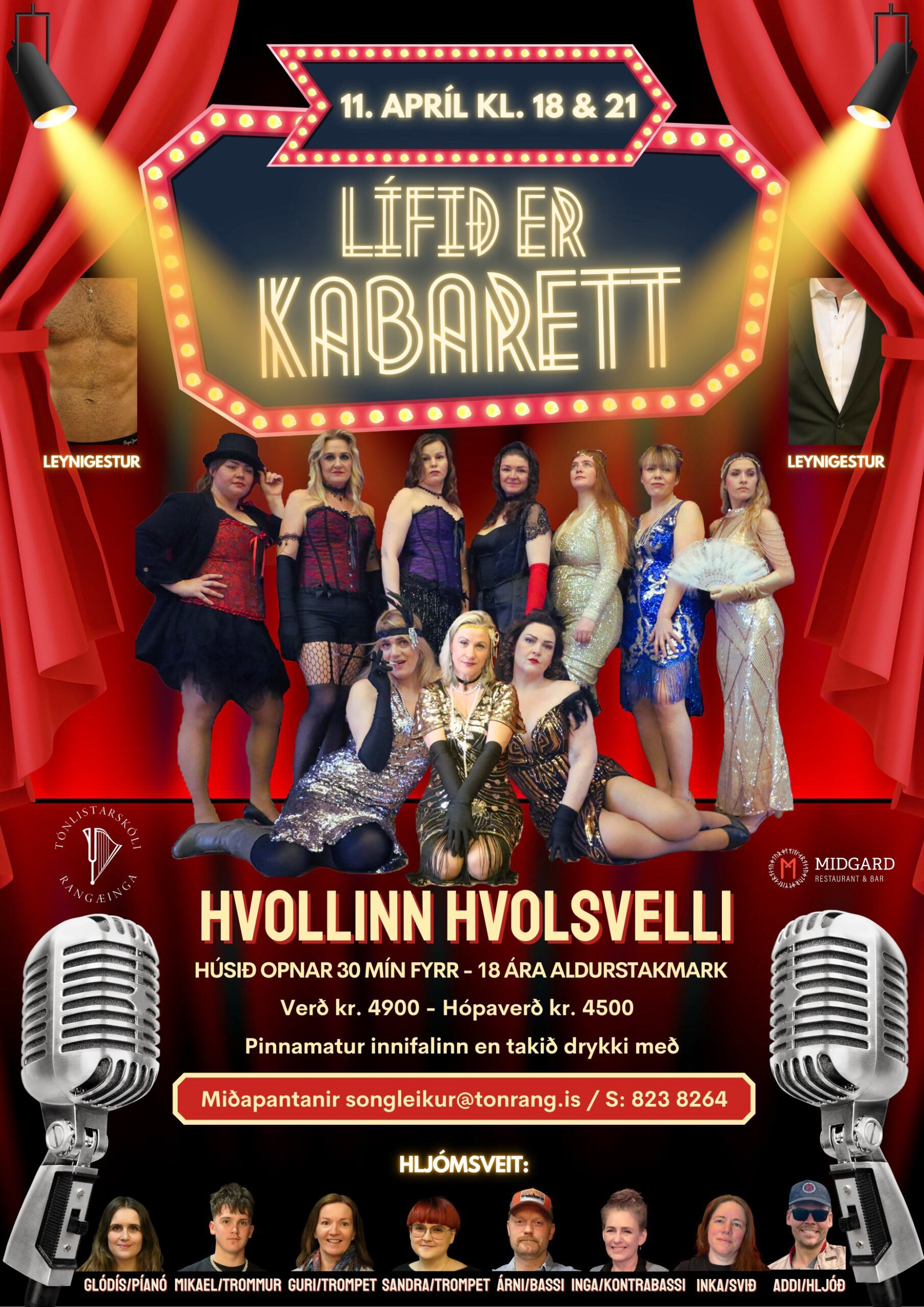 Lífið er kabarett er tónleikasýning með eldri söngnemendum Tónlistarskóla Rangæinga sem haldin verður 11. apríl nk. Tvær sýningar verða sýndar, ein klukkan 18 og önnur klukkan 21.