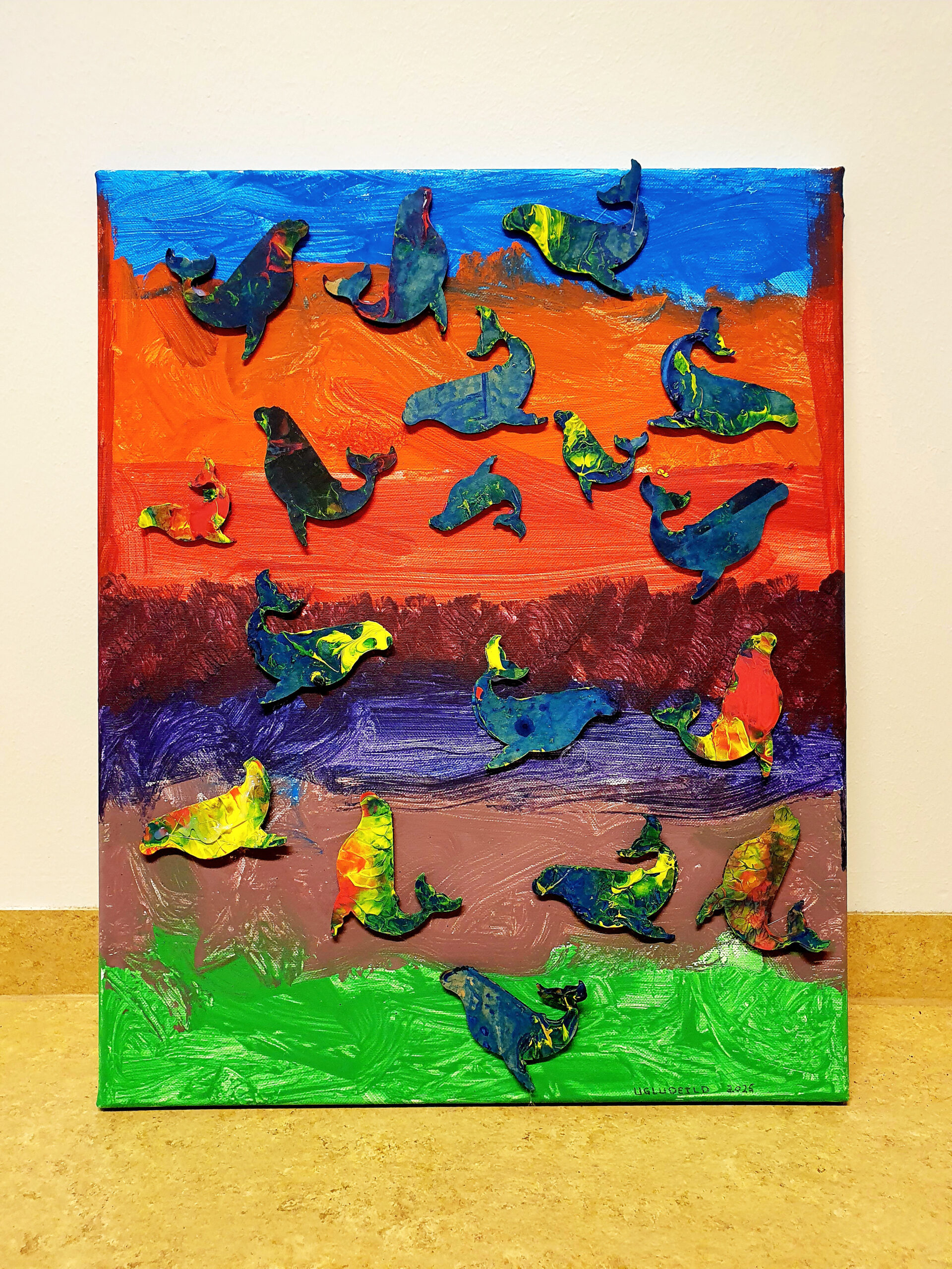 Nemendur hafa nú á vormánuðum unnið listaverk í sameiningu. Fólki gefst kostur á að virða fyrir sér listaverkin í Félagsheimilinu Þingborg á hátíðinni Fjör í Flóa. Þau sem vilja geta svo tekið þátt í hljóðu uppboði, boðið í listaverkin og þannig stutt við bakið á nemendum og starfsfólki leikskólans sem vinnur að því að efla læsi og lestraráhuga nemenda.