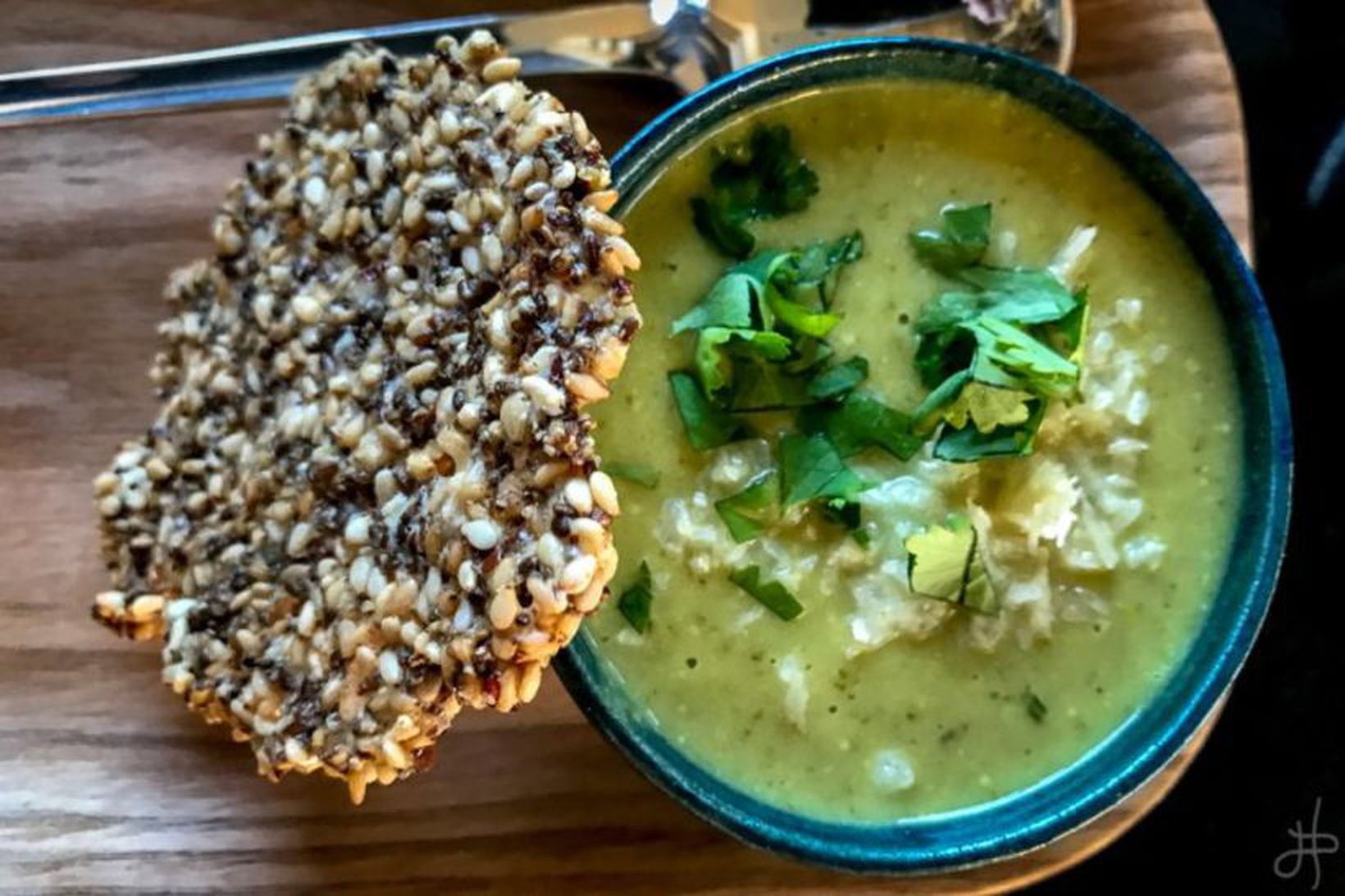 Þessi dásamlega súpa er í senn afskaplega bragðgóð og holl. Svo er svo frábært með þessa súpu að hún verður bara betri daginn eftir… og jafnvel enn þá betri tveimur dögum síðar. Uppskriftina má hœglega helminga en þá er hún passleg fyrir fjóra. Mér finnst gaman að bjóða upp á súpuna í litlum skálum sem forrétt og hef þá hrökkbrauð með,heimagert eða bara úr Bónus og með döðlupesto (uppskrift hér að neðan)