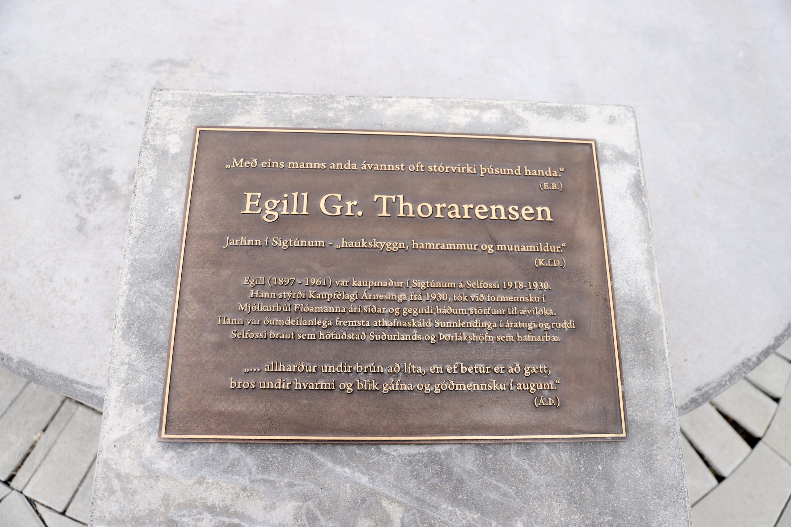 Margt var um manninn í miðbæ Selfoss þann 16. júní, þegar stytta af Agli Thorarensen, frumkvöðli og kaupfélagsstjóra, var afhjúpuð. Halla Gunnarsdóttir, myndhöggvari sá um styttusmíðina og stóð áhugamannafélagið Styttubandið fyrir uppsetningu styttunnar.