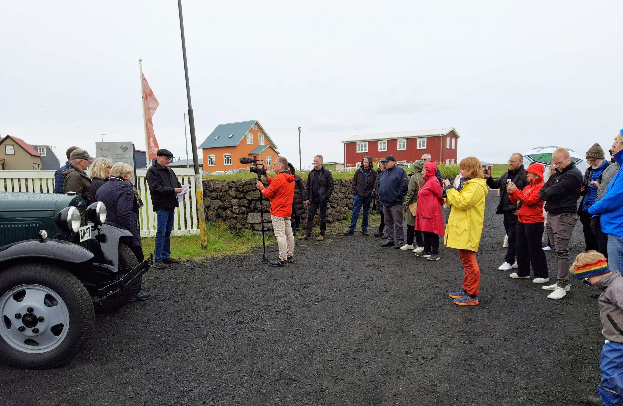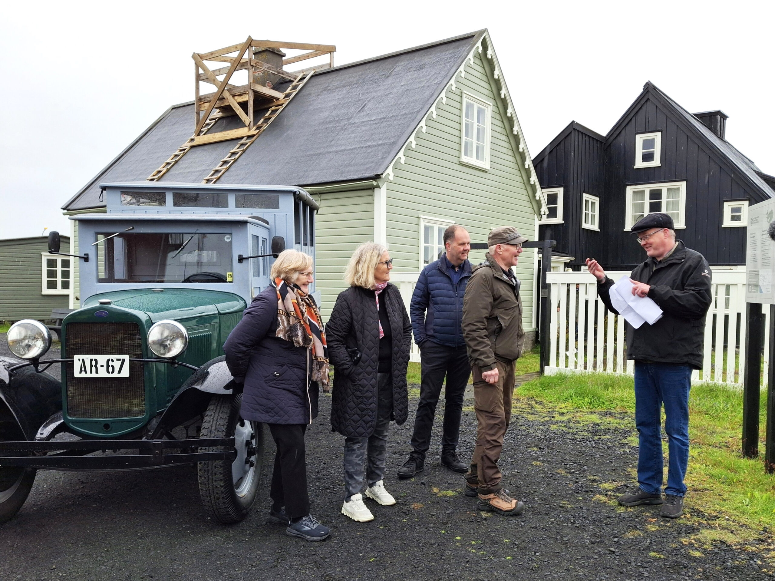 Meðfylgjandi eru myndir frá afhendingunni en Lýður Pálsson safnstjóri tók við lyklum bílsins úr hendi Sigurðar Óla Guðbjörnssonar að viðstöddum Maríu systur Sigurðar Óla og ekkju Erlings Ævarrs, Sigríði Dagnýju Ólafsdóttur. Sigurður E. Steinsson, dóttursonur Guðbjörns, flutti ávarp fyrir hönd gefenda og Lýður Pálsson safnstjóri þakkaði fyrir gjöfina með stuttri tölu.