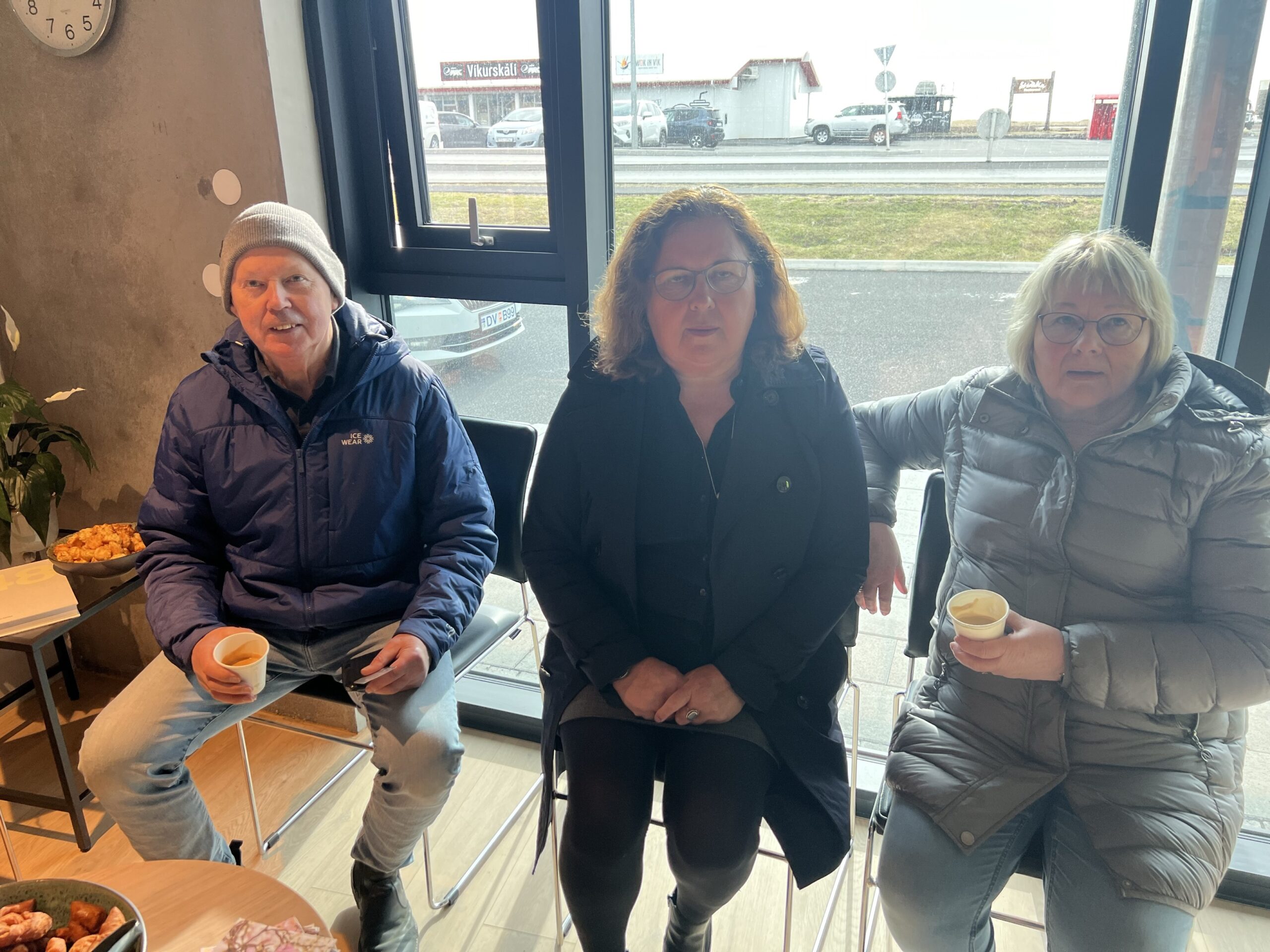 Sigurður Ævar íbúi í Vík ásamt Svanhvíti (Naní) og Helgu Elsu sem störfuðu eitt sinn hjá Arion banka.