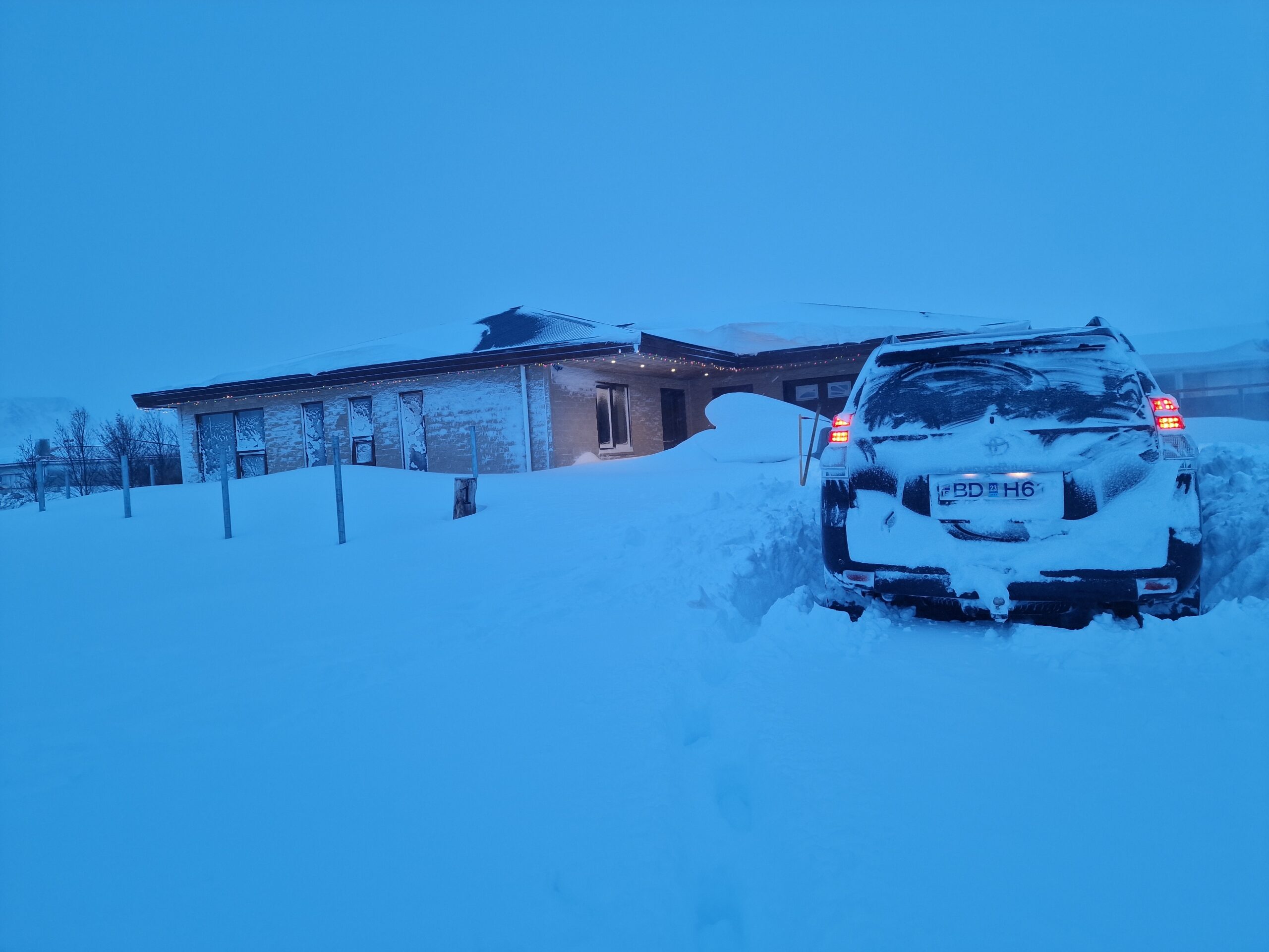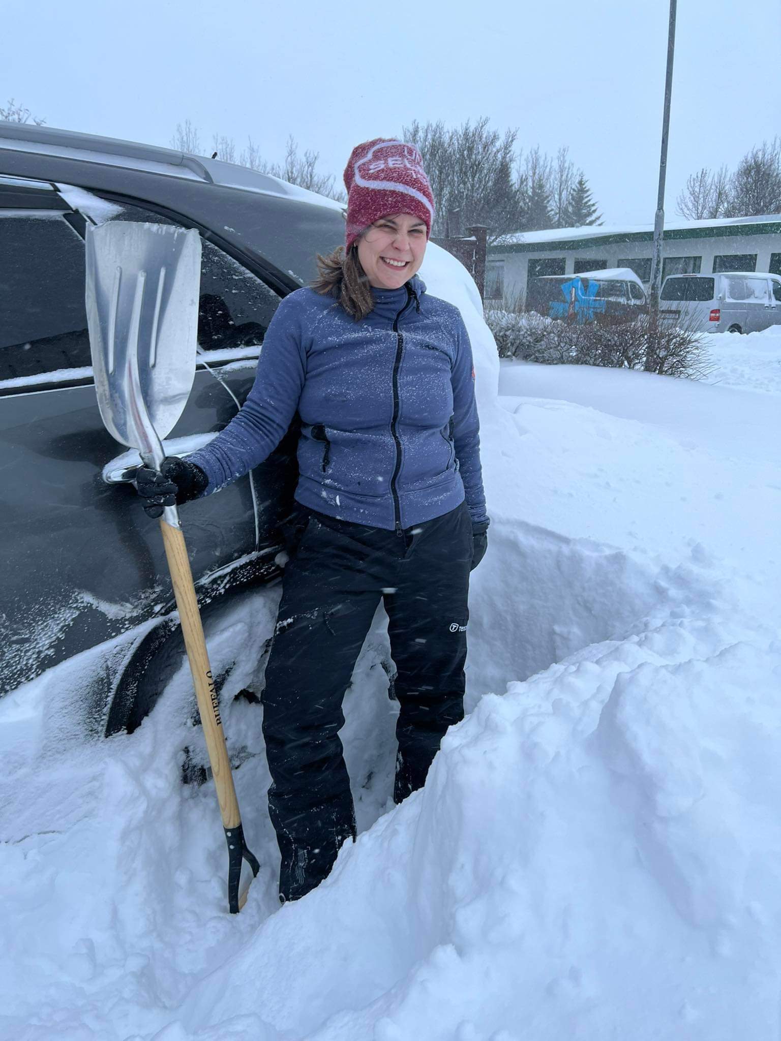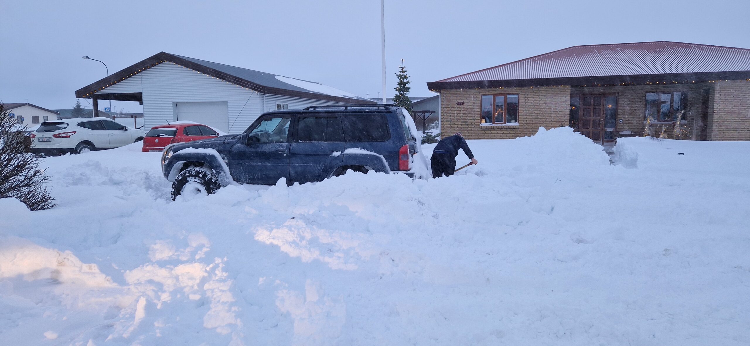 Það er ekki allra að grafa bílana sína út úr klofhæðarháum snjó! Mynd: Þóra Guðmundsdóttir