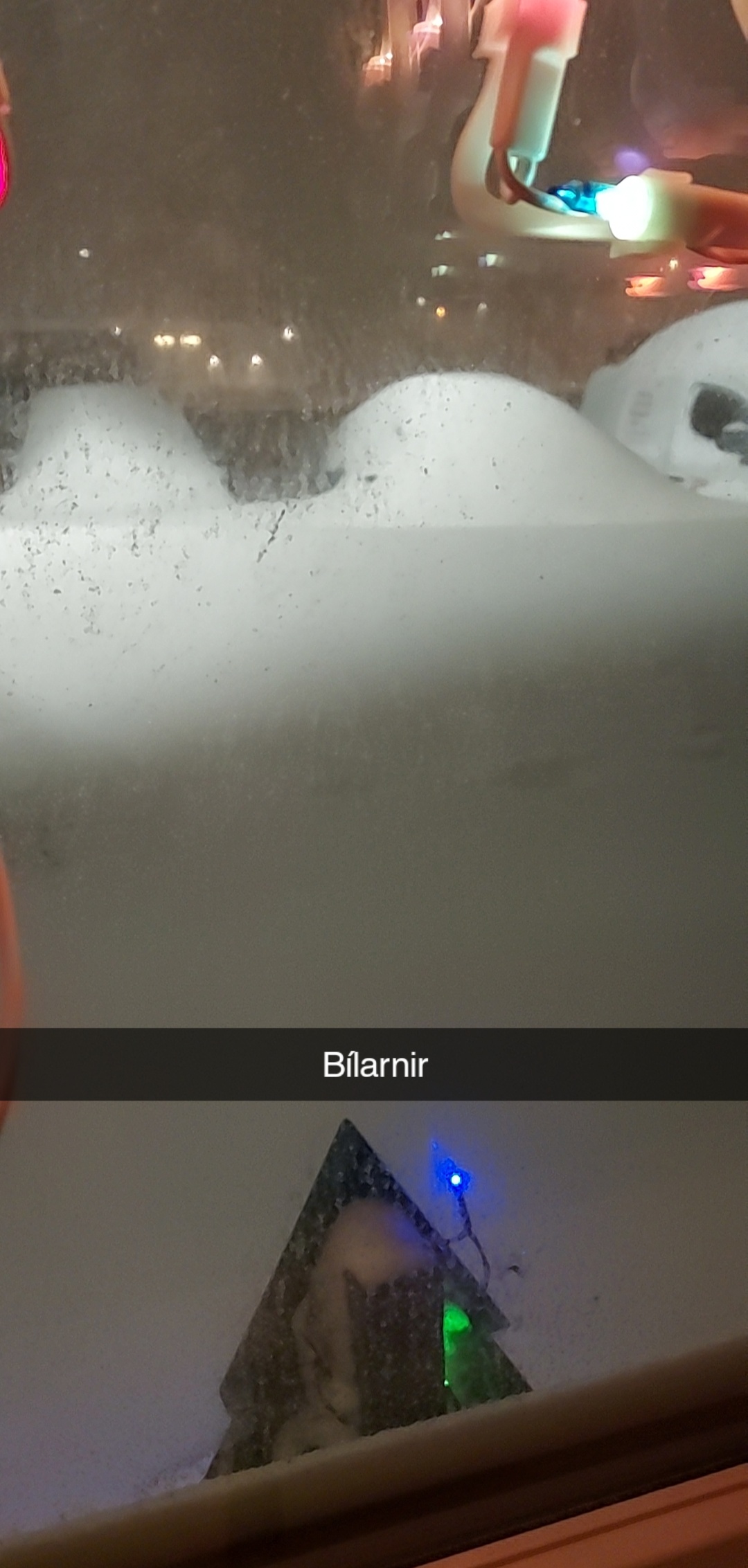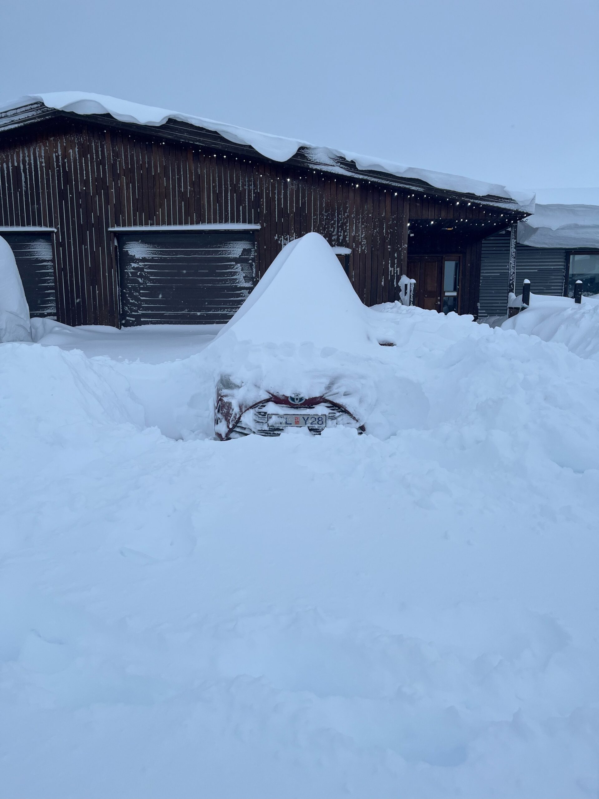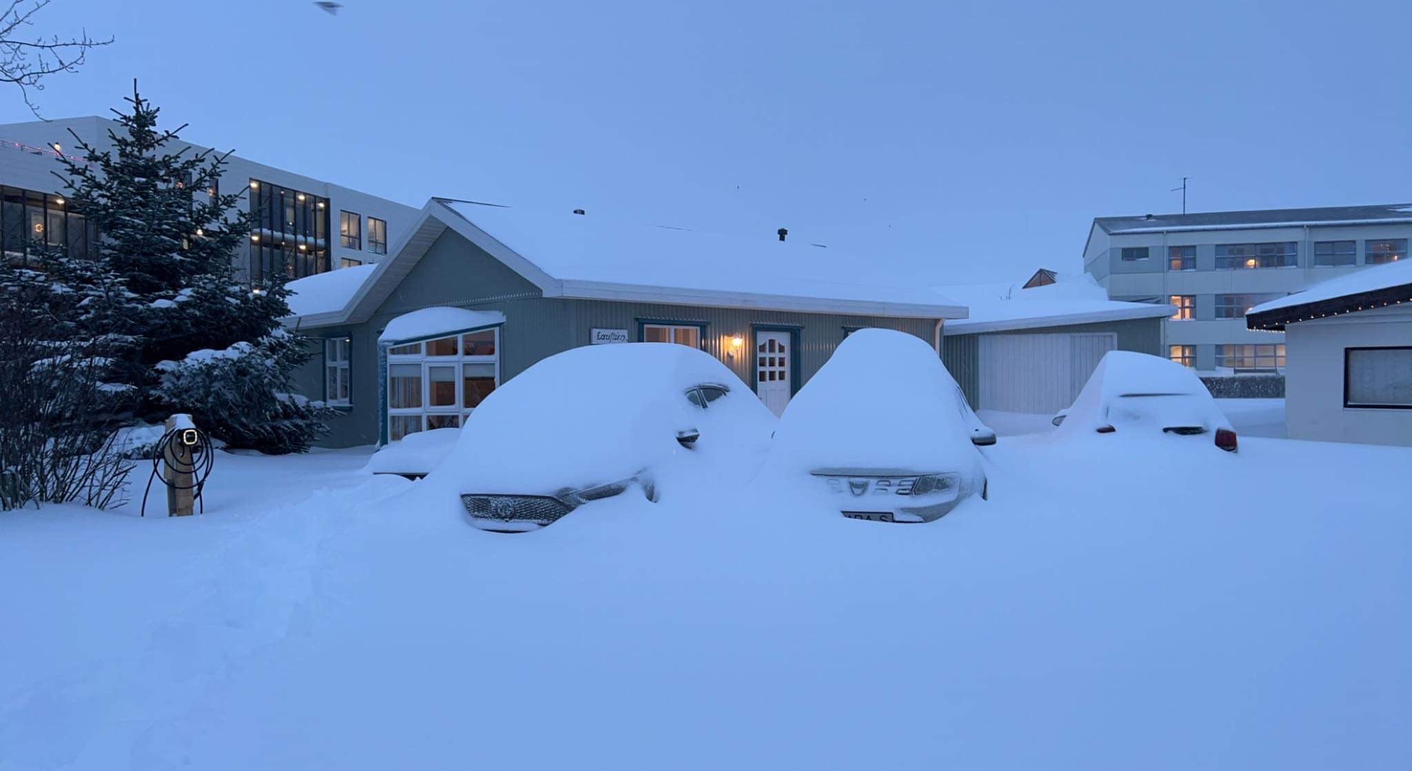 Já, þetta eru semsagt bílar þarna undir öllum snjónum. Mynd: Linda Margrét Jafetsdóttir.