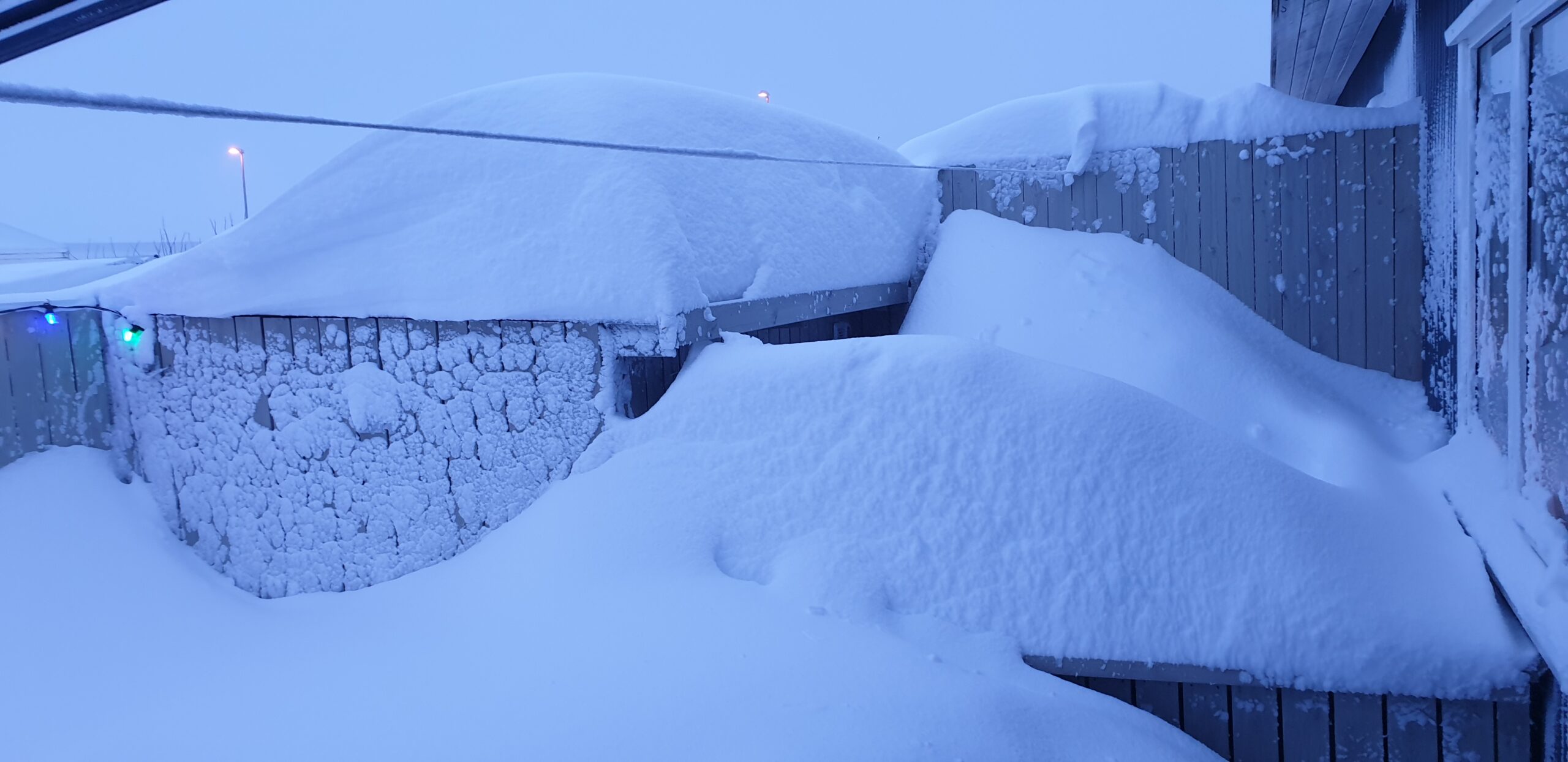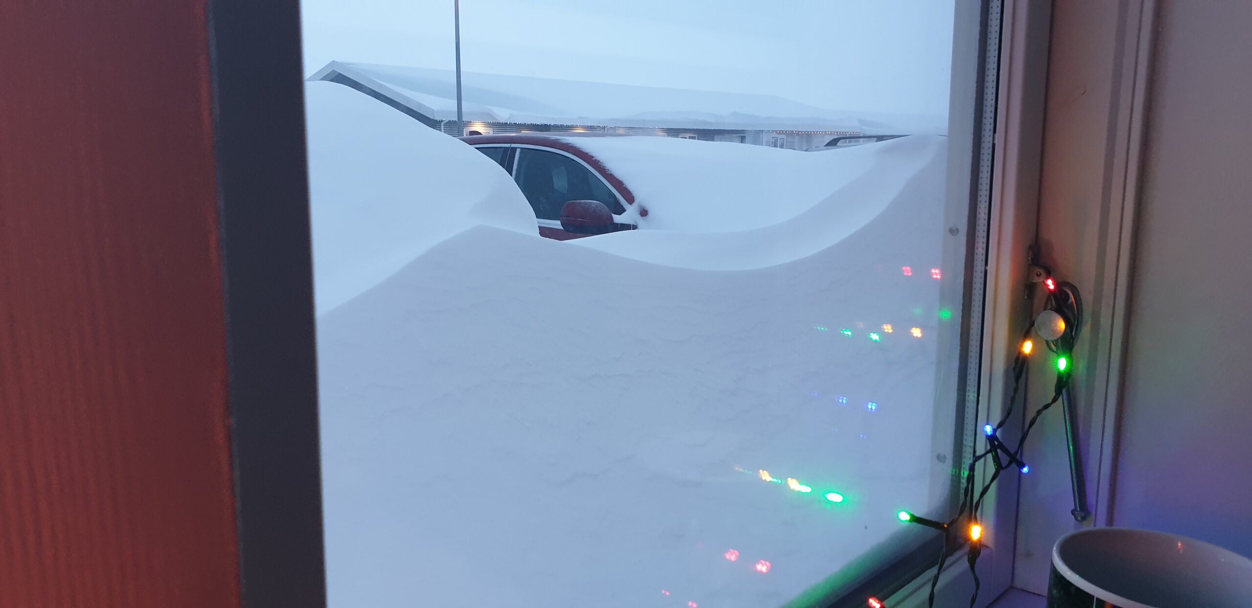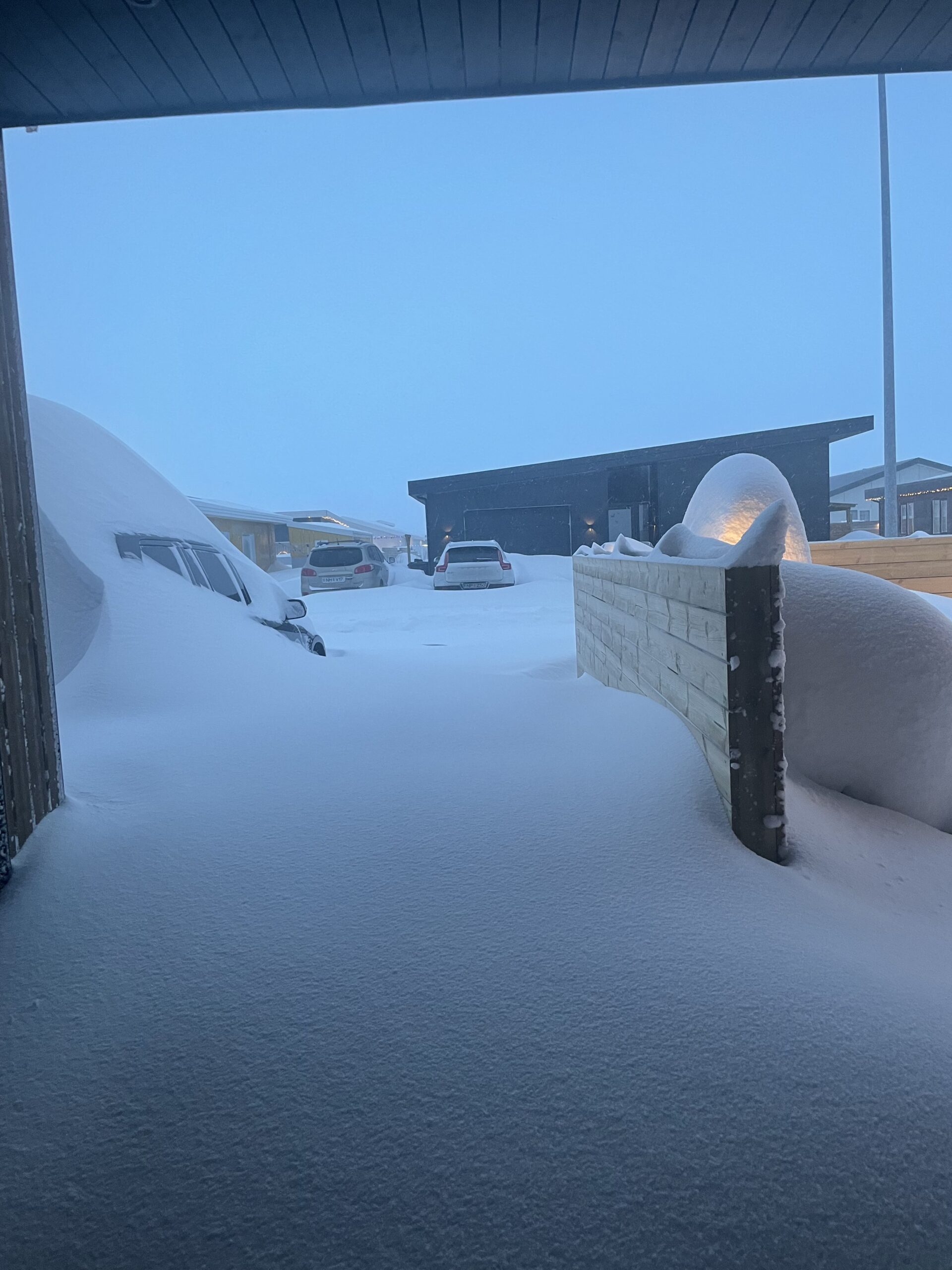 Já, þetta eru semsagt bílar þarna undir öllum snjónum. Mynd: Linda Margrét Jafetsdóttir.