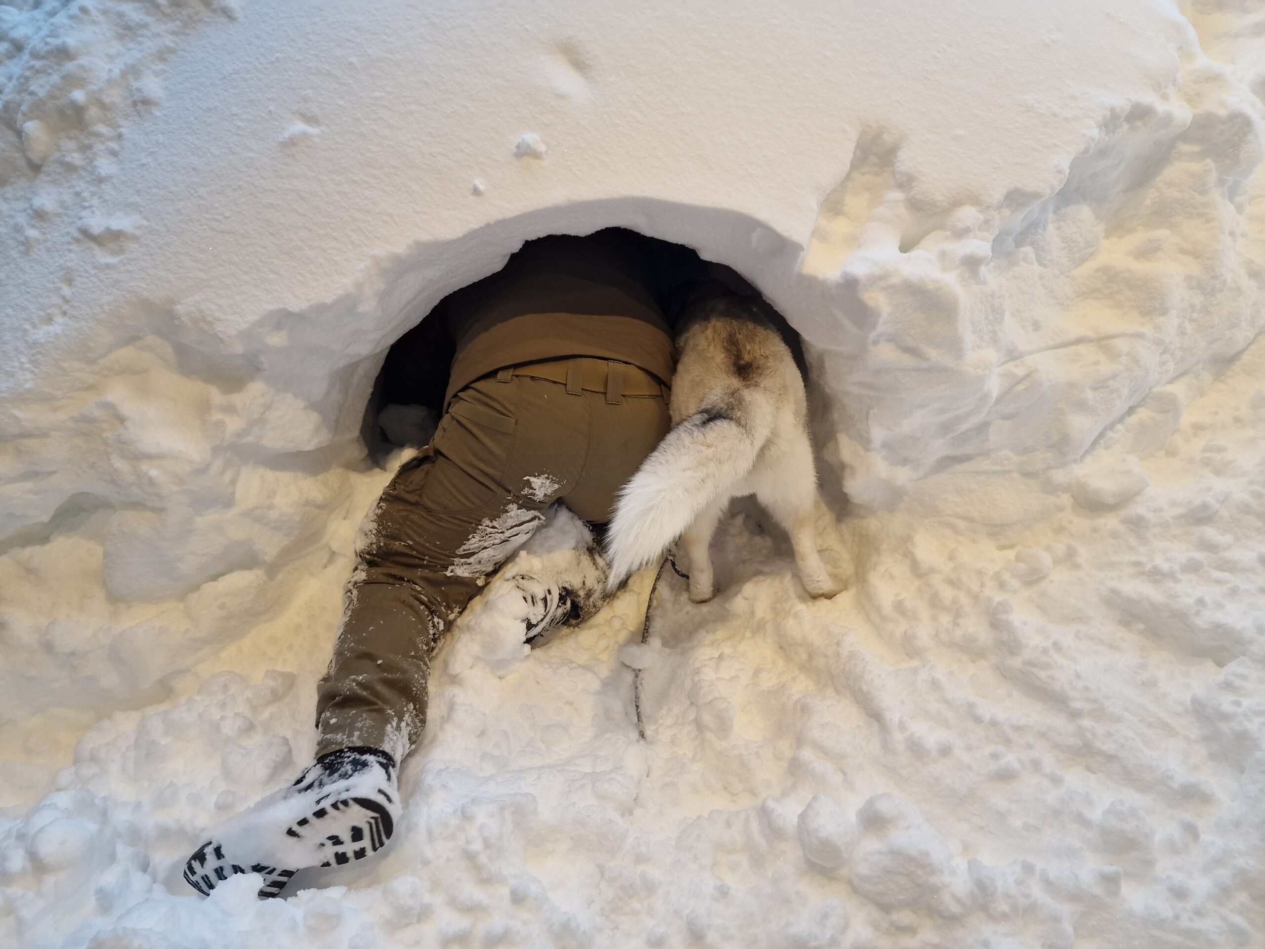 Það þarf ekki einusinni að byggja snjóhús, bara grafa sig inn í næsta hól! Mynd: Katrín Rut.