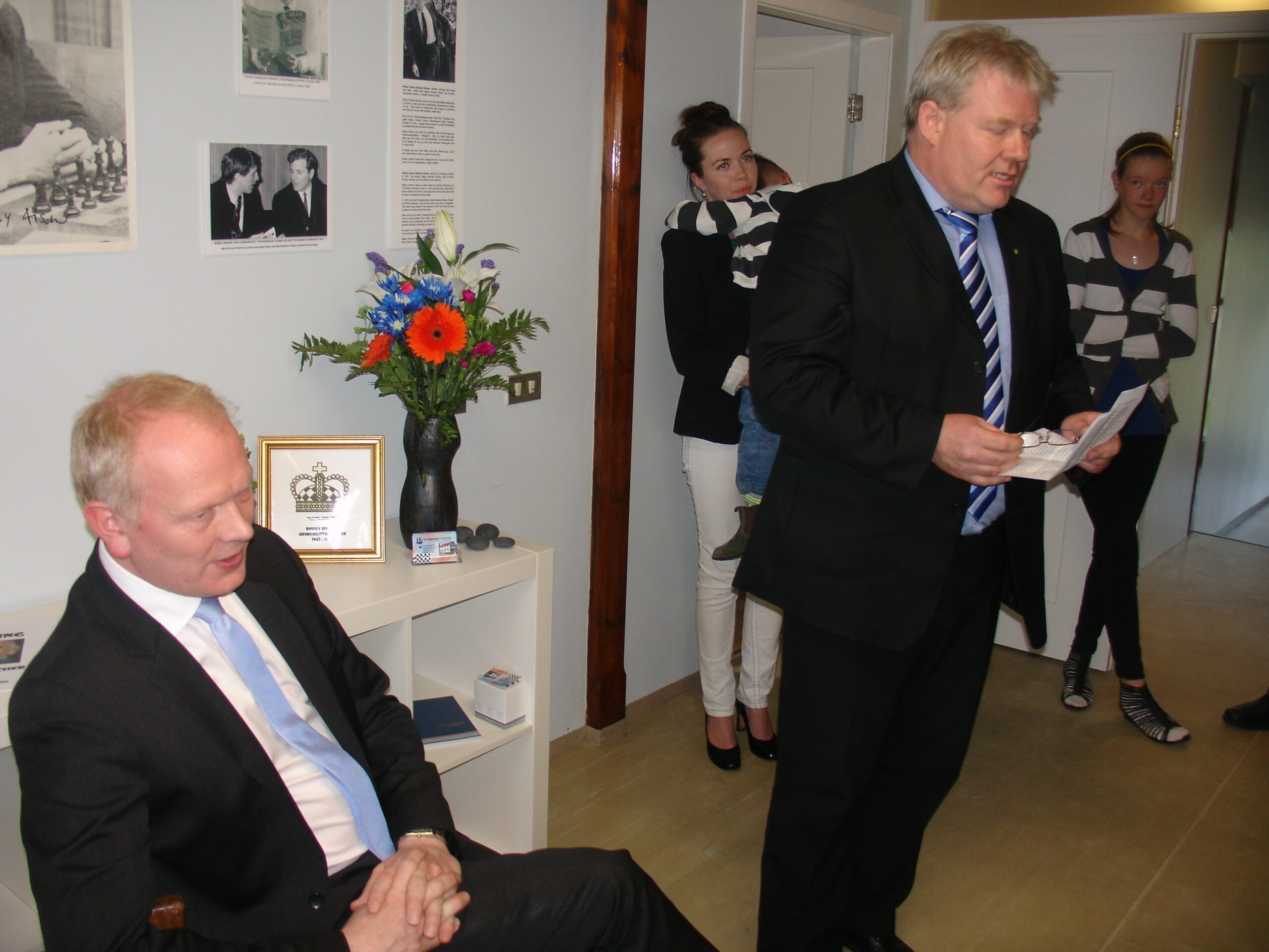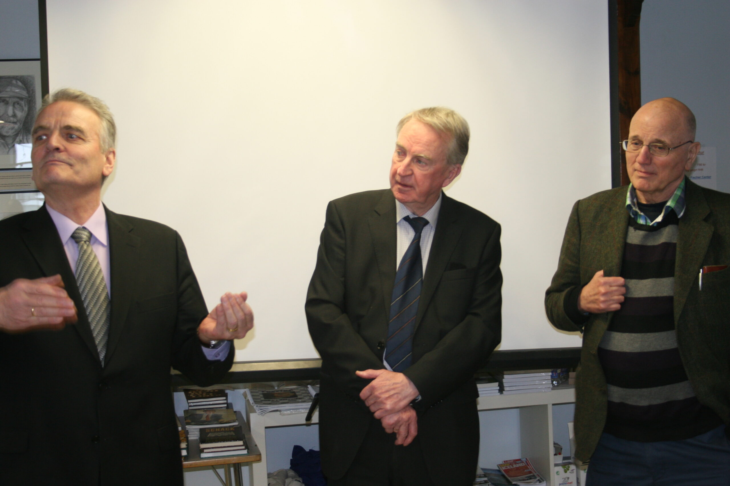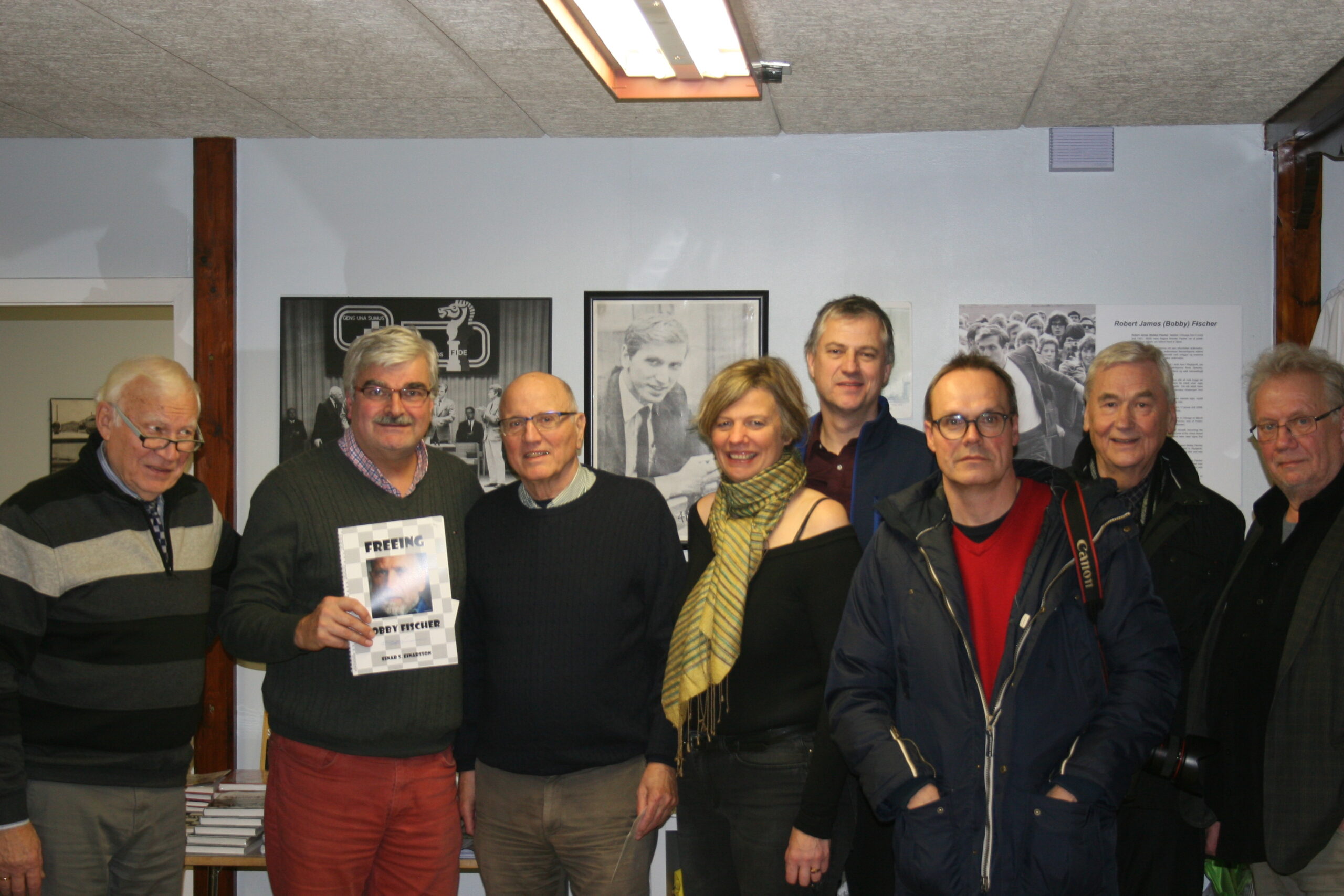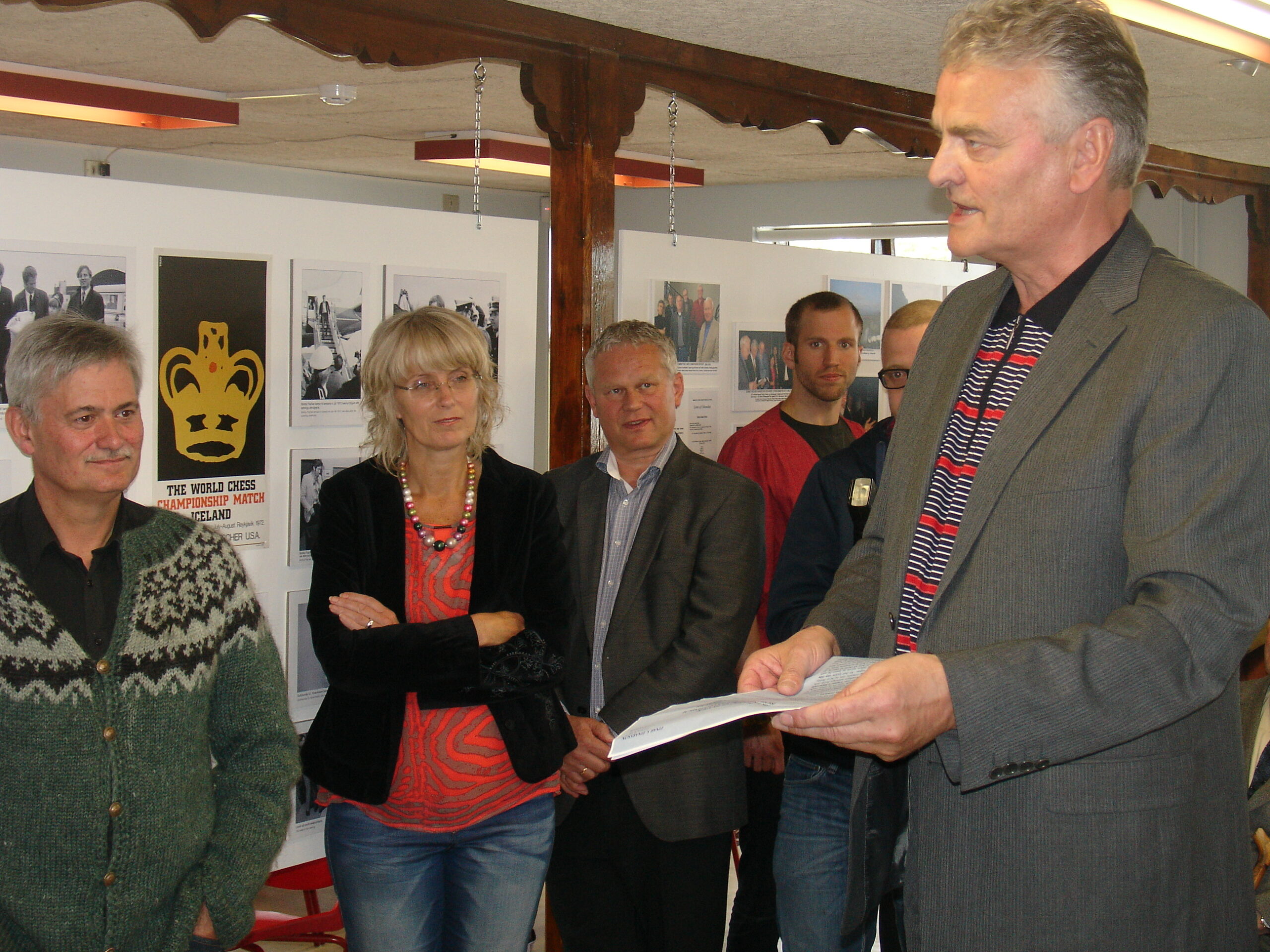 Hópurinn sem mætti á undirbúnings fundinn fyrir stofnun Fischerseturs þann 11. júlí 2012. Neðri röð f.v. Stefán Steingrímur Bergsson, Helgi Ólafsson, Guðmundur G. Þórarinsson, Hrafn Jökulsson, Magnús Matthíasson, Sigfús Kristinsson, Gunnar Finnlaugsson, Ásdís Halldórsdóttir, Guðni Ágústsson, Guðmundur Þór Gunnarsson, Kolbrún Markúsdóttir, Gunnar Björnsson, Aldís Sigfúsdóttir, Guðmundur Kristinsson og Hilmar Viggósson. Efsta röð, f.v. Bjarni Harðarson, Eyþór Arnalds, Aðalsteinn Sveinsson, Kristinn A. Friðfinnsson og Kjartan Björnsson.