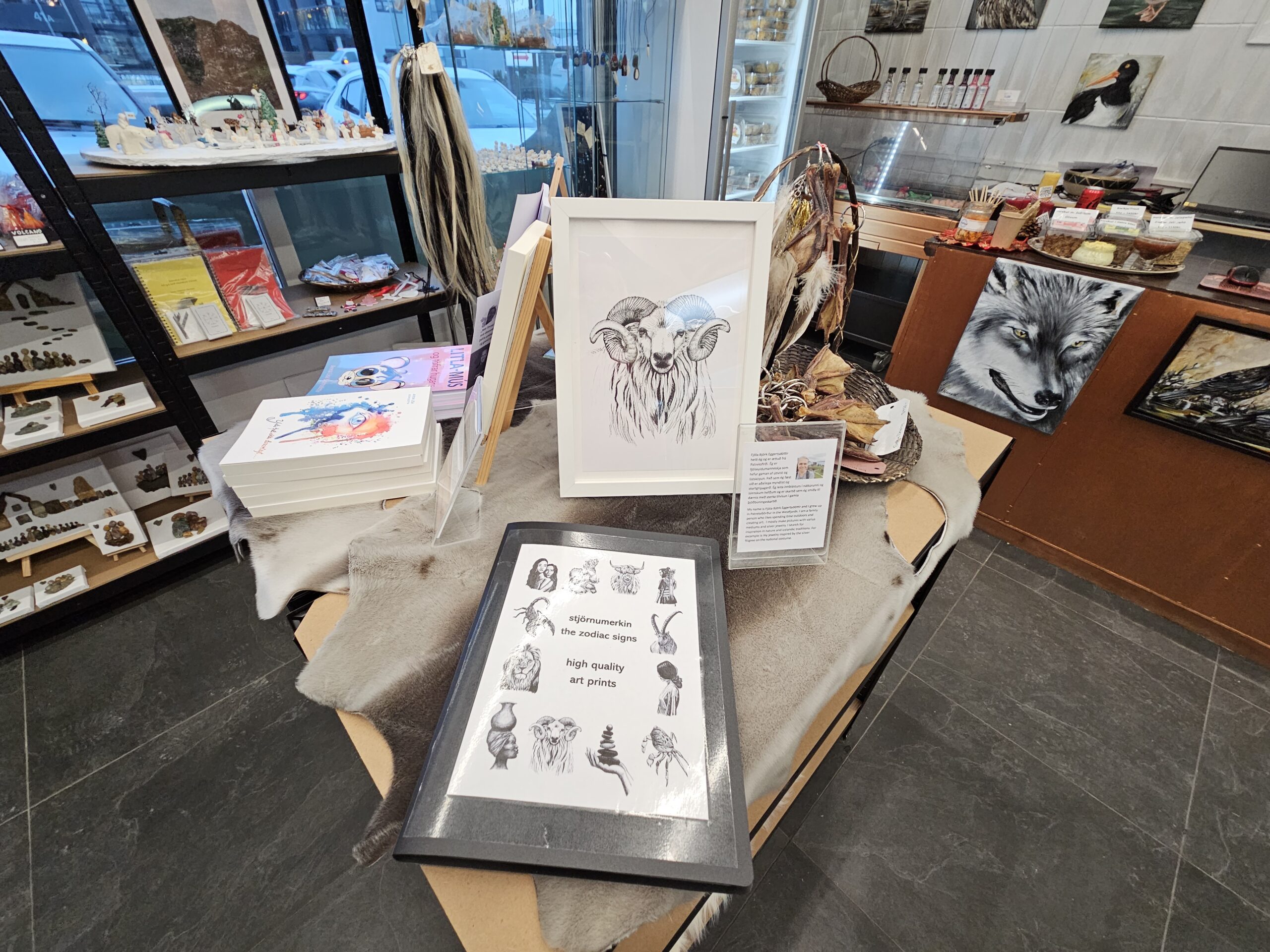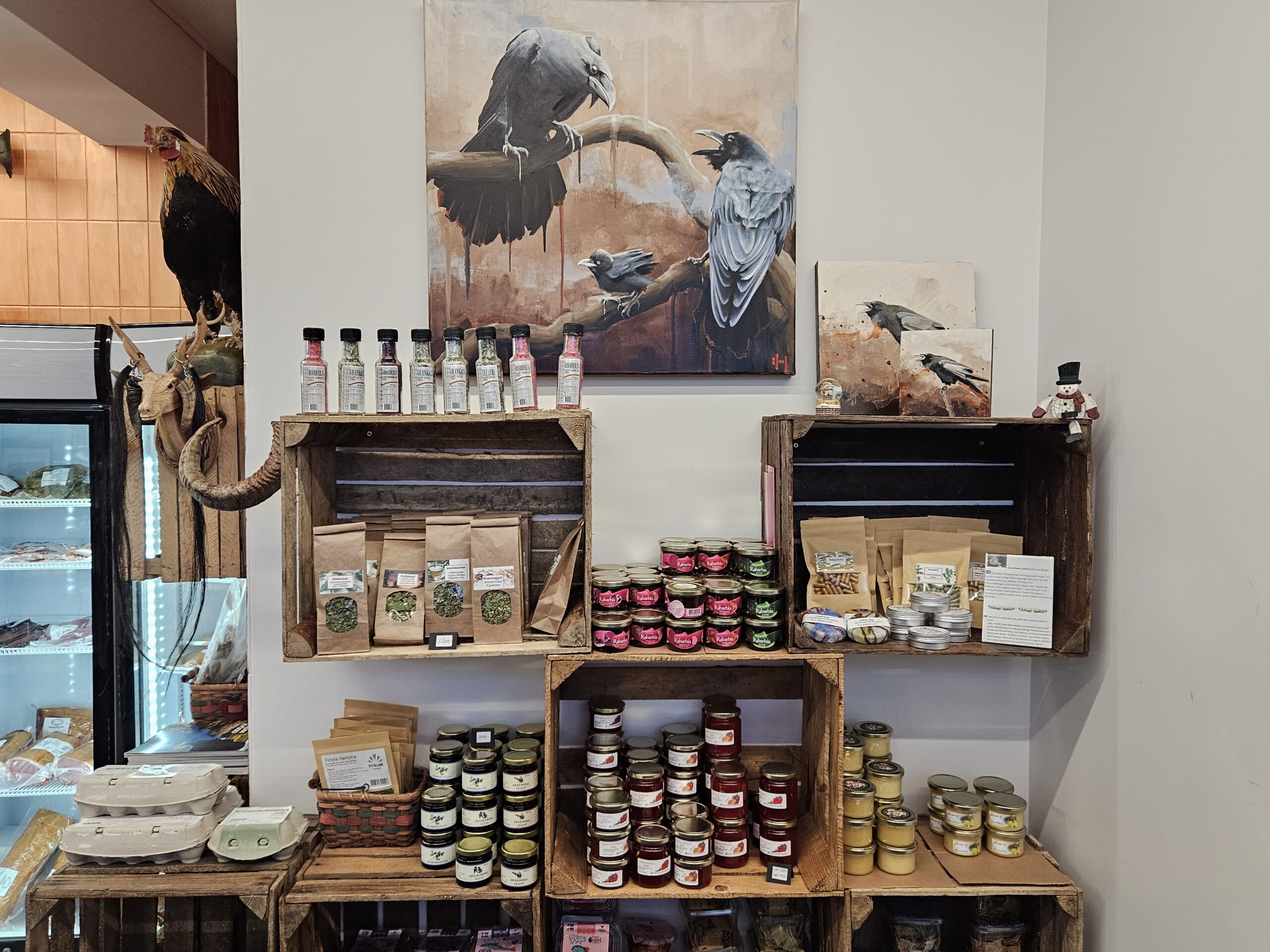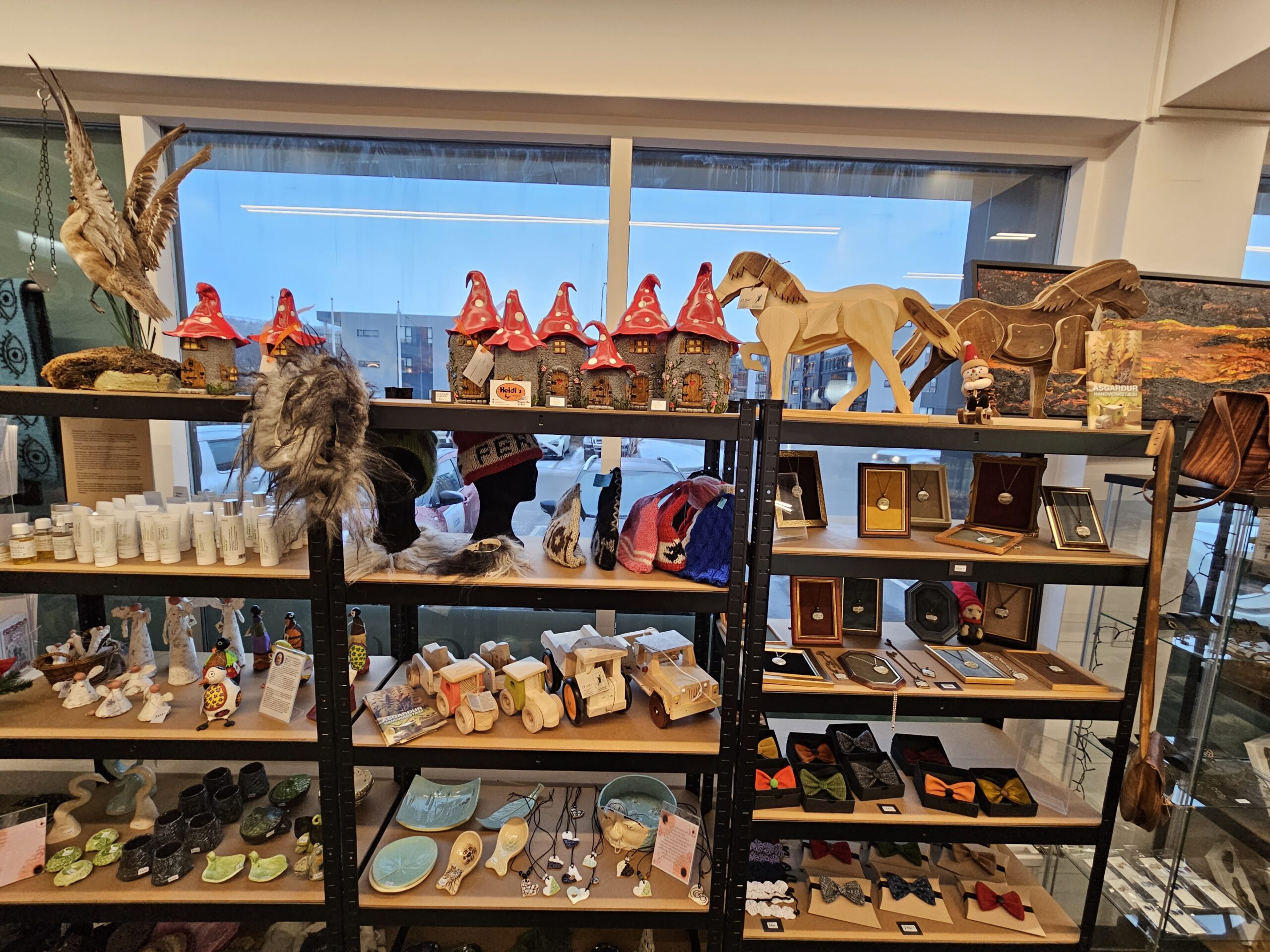 „Vöruúrvalið er mjög fjölbreytilegt, úrval matvæla svo sem kjöt, fiskur, mjólkurvörur, heilsuvara, te, söl hunang og margt fleira. Mikið úrval handverks svo sem keramik, skartgripir, hnífar, töskur prjónavörur, málverk og lengi mætti telja. Seljum einnig vörur frá vernduðum vinnustöðum,“ bætir Alda við.