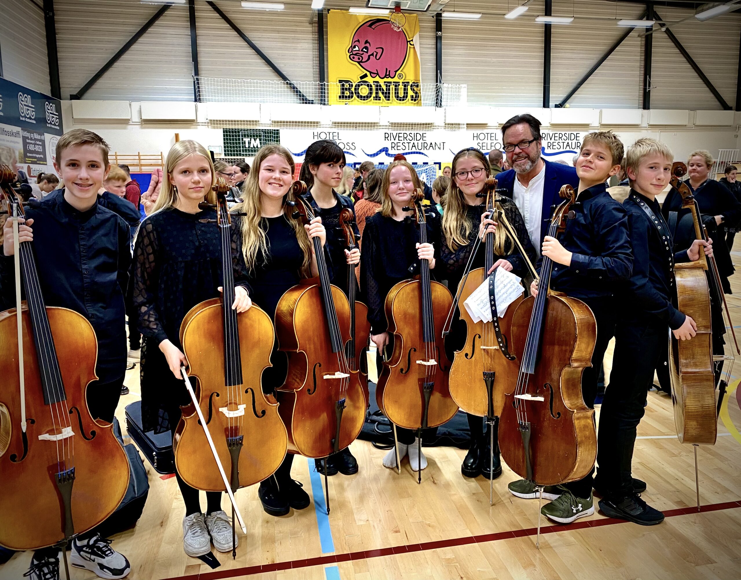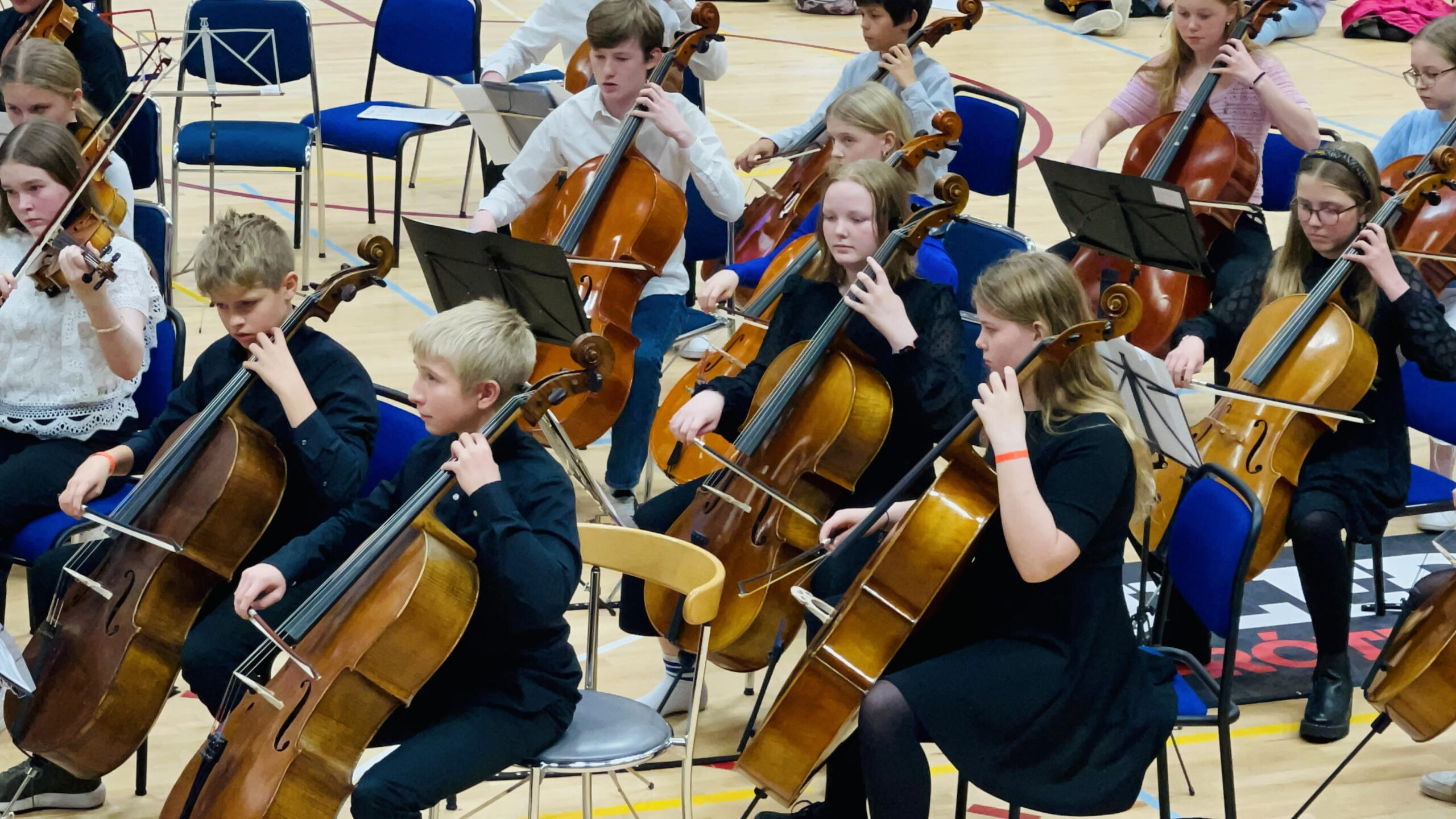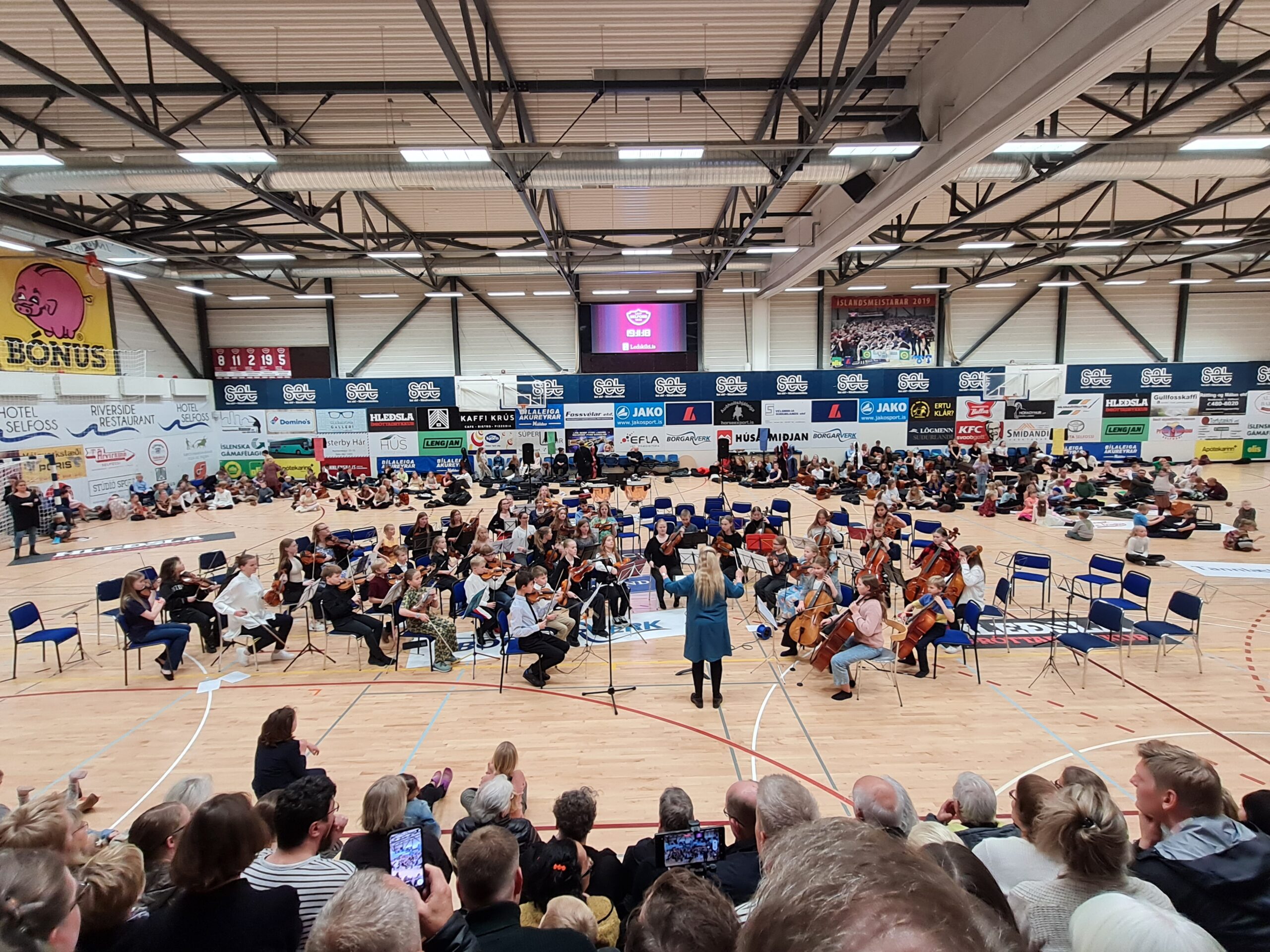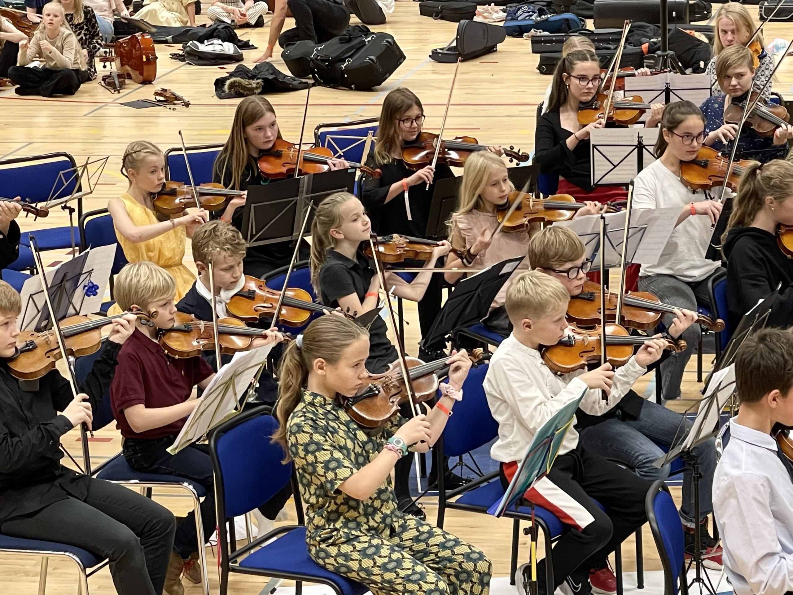 Um síðustu helgi var haldið Strengjamót á Selfossi þar sem strokhljóðfæranemendum af öllu landinu var boðið að taka þátt. Allt að 250 börn og unglingar frá aldrinum 7 – 17 ára mættu og skipuðu fjórar stórar hljómsveitir eftir því hvar þau eru stödd í náminu; gula sveit fyrir byrjendur, svo rauða og græna, en bláa sveitin er fyrir þau sem lengst eru komin í tónlistarnáminu. Stjórnendur sveitanna voru Örnólfur Kristjánsson, Kristján Matthíasson, María Weiss og Guðmundur Óli Gunnarsson og kynnir á tónleikunum var Magnea Gunnarsdóttir.