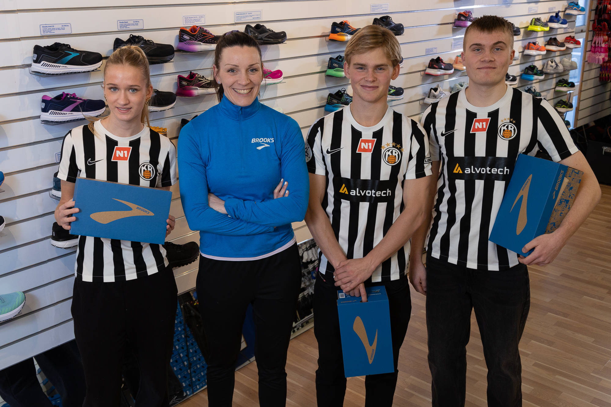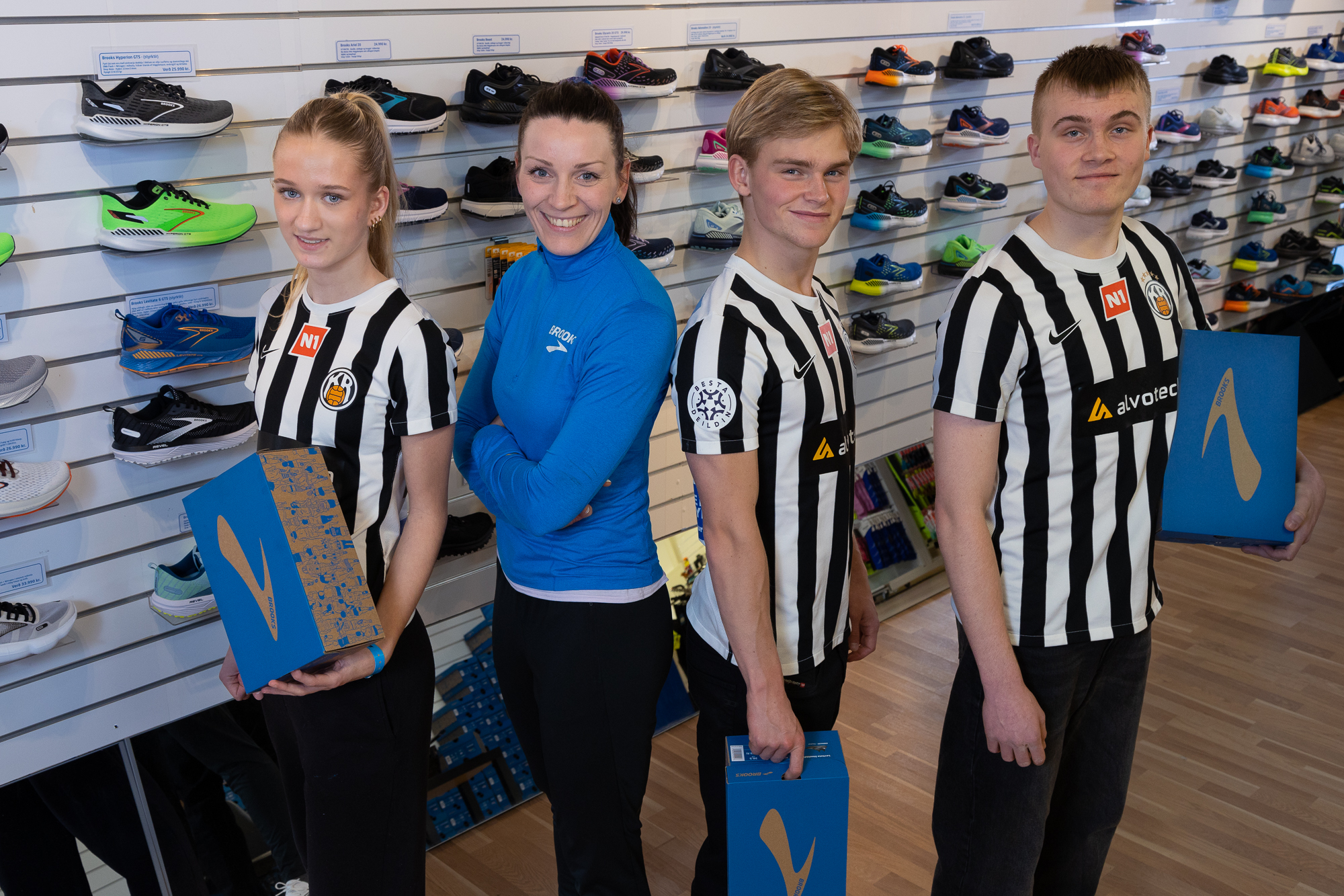 Fjóla Signý Hannesdóttir eigandi Run2 ehf., sem bæði rekur heildverslun og íþróttavöruverslunina Fætur Toga, hefur styrkt fimm íþróttafélög á landinu með nýjum íþróttaskóm. Iðkendur og þjálfarar í meistaraflokkum fimm liða fengu að þessu sinni skópar frá Brooks að eigin vali, en heildarupphæð styrksins til félaganna nemur rúmlega 13 milljónum króna.