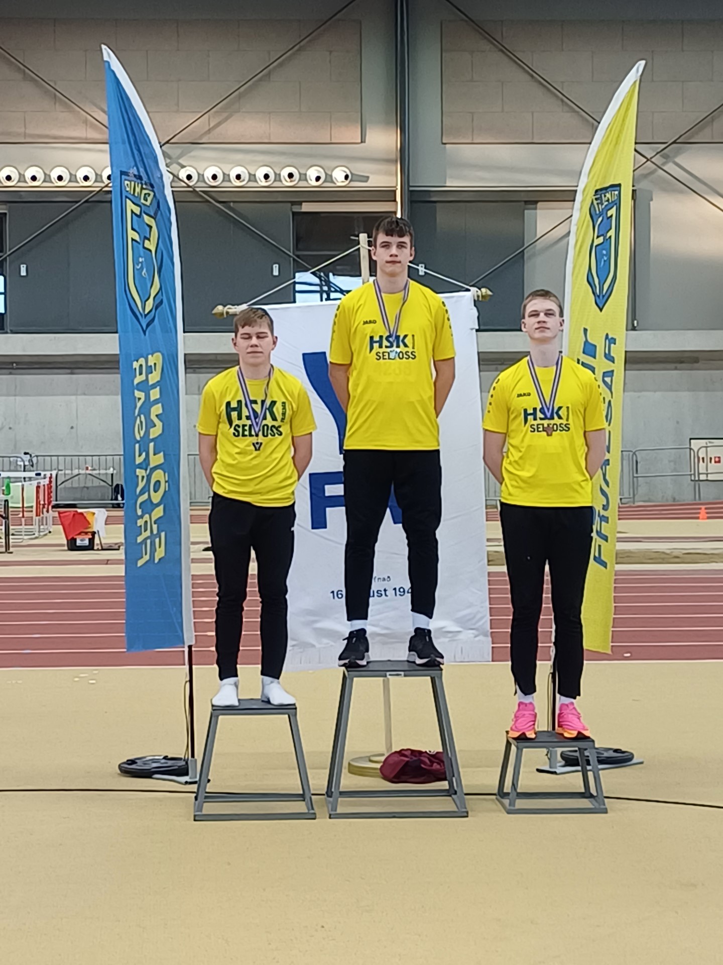 18-19 ára piltar: Daníel Breki Elvarsson varð Íslandsmeistari í 60m grindahlaupi á timanum 10,02s. Hann vann til silfurverðlauna í hástökki og langstökki og að lokum vann hann til bronsverðlauna í 400m hlaupi og 4x200m boðhlaupi. Hreimur Karlsson vann til silfurverðlauna í 60m grindahlaupi og í 4x200m boðhlaupi vann hann bronsverðlaun. Vignir Steinarsson vann til þriggja bronsverðlauna, i hástökki, þrístökki og í 4x200m boðhlaupi og að lokum vann Olgeir Otri Engilbertsson til bronsverðlauna í 4x200m boðhlaupi.