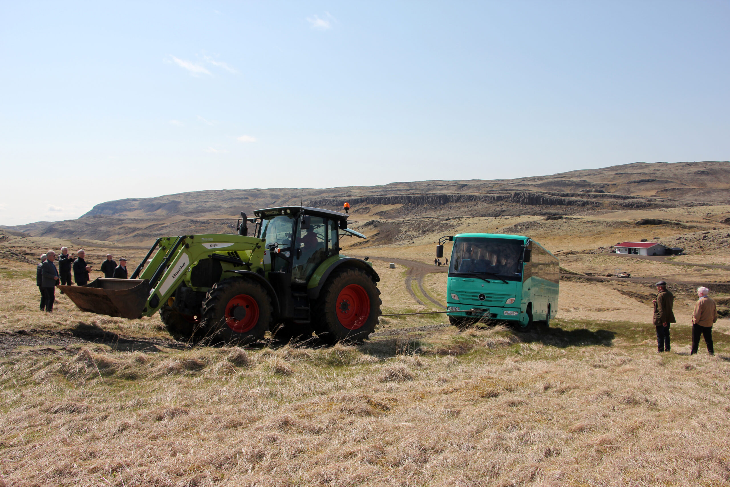 Björn taldi Þórði trú um að gamli vegurinn að Kluftabænum væri fær rútum. Þórður kallar ekki allt ömmu sína, lét til leiðast og þræddi hinn mjóa veg en sá að þetta var glæfraferð, hvergi hægt að snúa við. Hann skipaði ferðafélögunum að ganga síðasta spölinn að bæjartóftunum, enginn sá eftir því og bræðurnir Garðar og Billi voru komnir heim. Þórður tók hins vegar að bakka rútunni, í einni beygjunni fór rútan of langt út í kantinn. Þórður hljóp út, sló saman höndunum og sagði „ég hreyfi hana ekki fyrr en kemur jarðýta.“ Samkoman þagnaði, Björn bóndi dó ekki ráðalaus og hringdi að Sólheimum, ræsti út Ingvar, ungan og vaskan. Þarna í sólskininu lágu ferðafélagarnir eins og hráviður um alla móa. Ekki væsti um þá, sólin bakaði þá eins og á Tene, seðlabankastjóri fékk þó enga tásumynd. Rútan var hengd aftan í stærsta traktor Hrunamanna. Obbisí, hún losnaði.