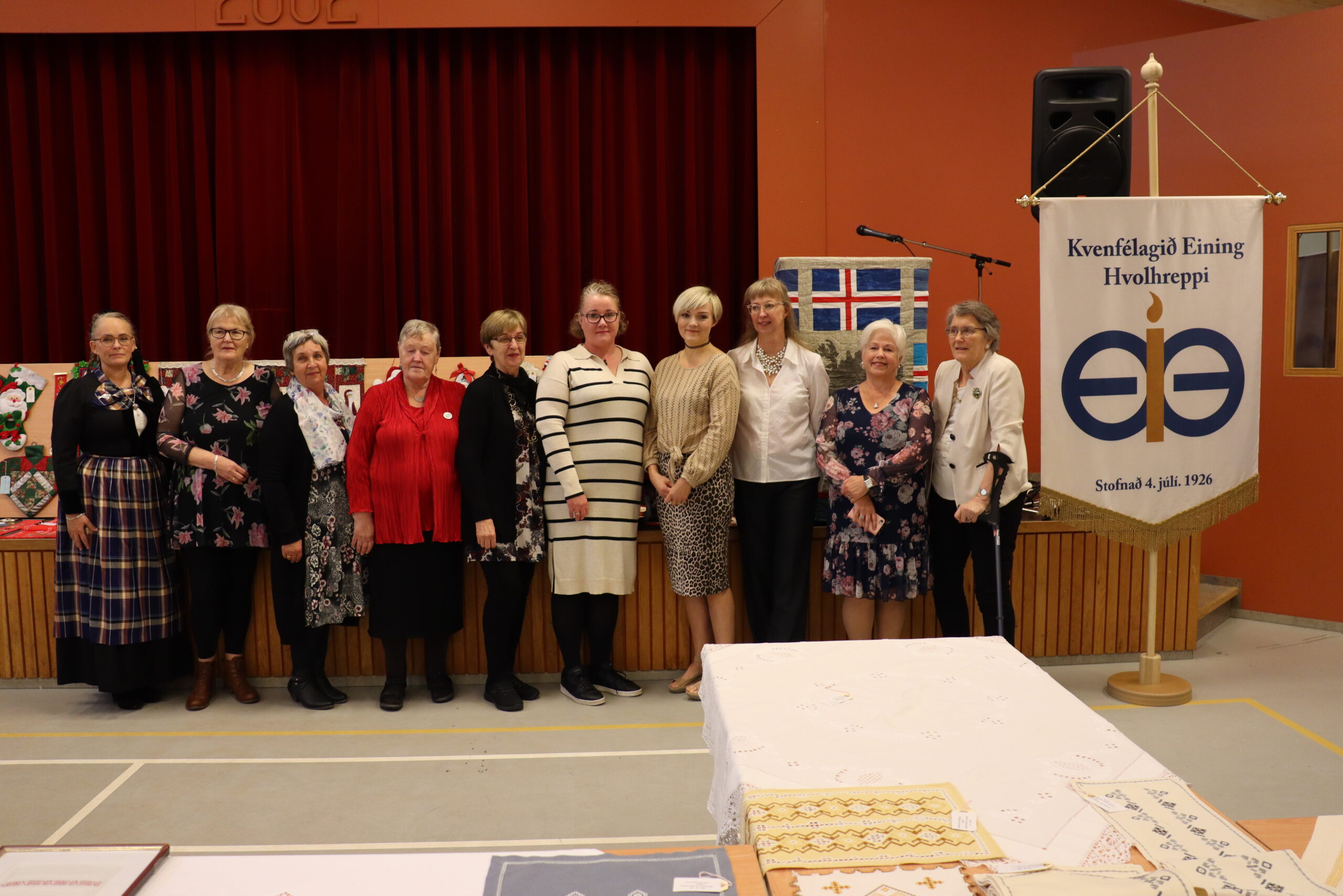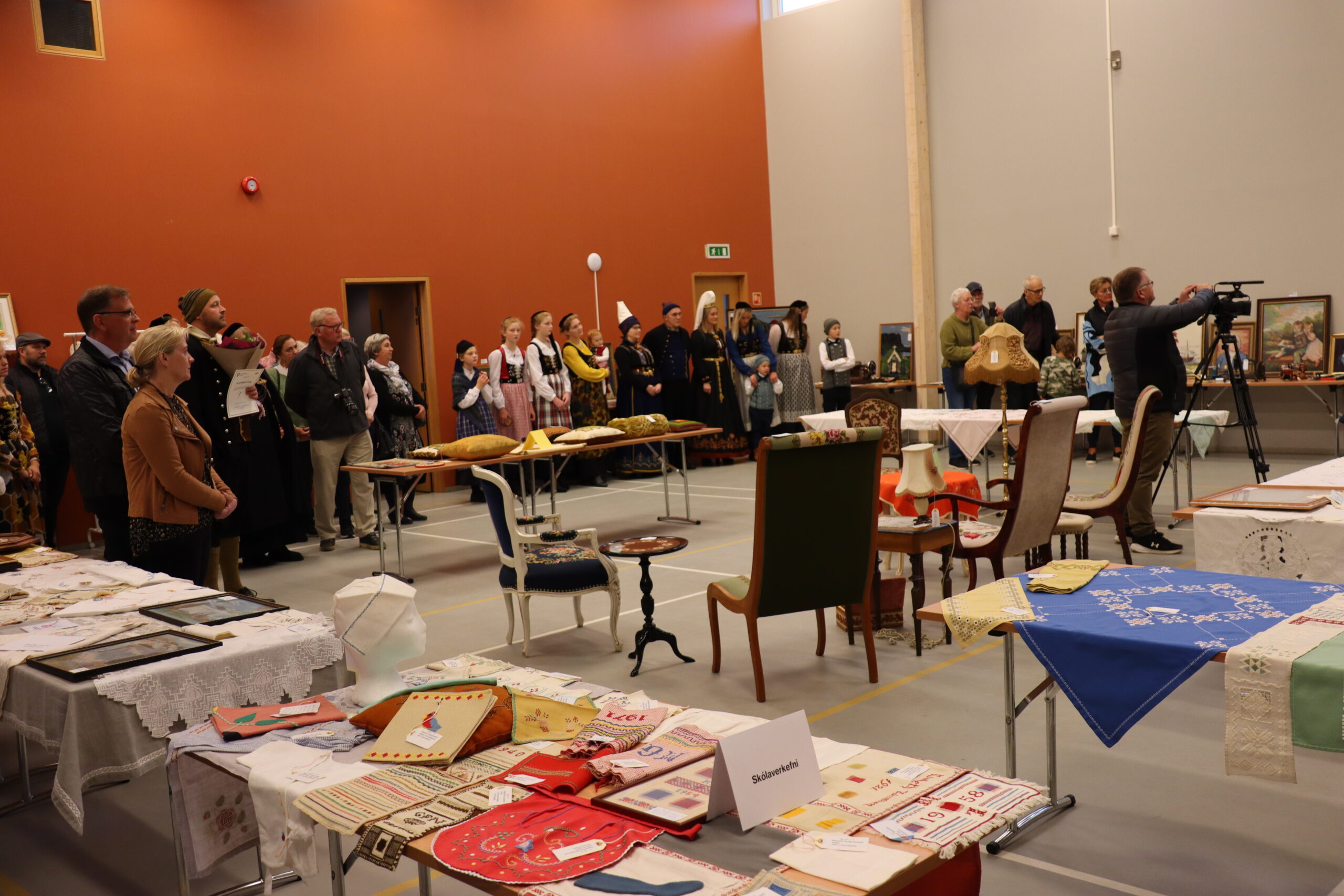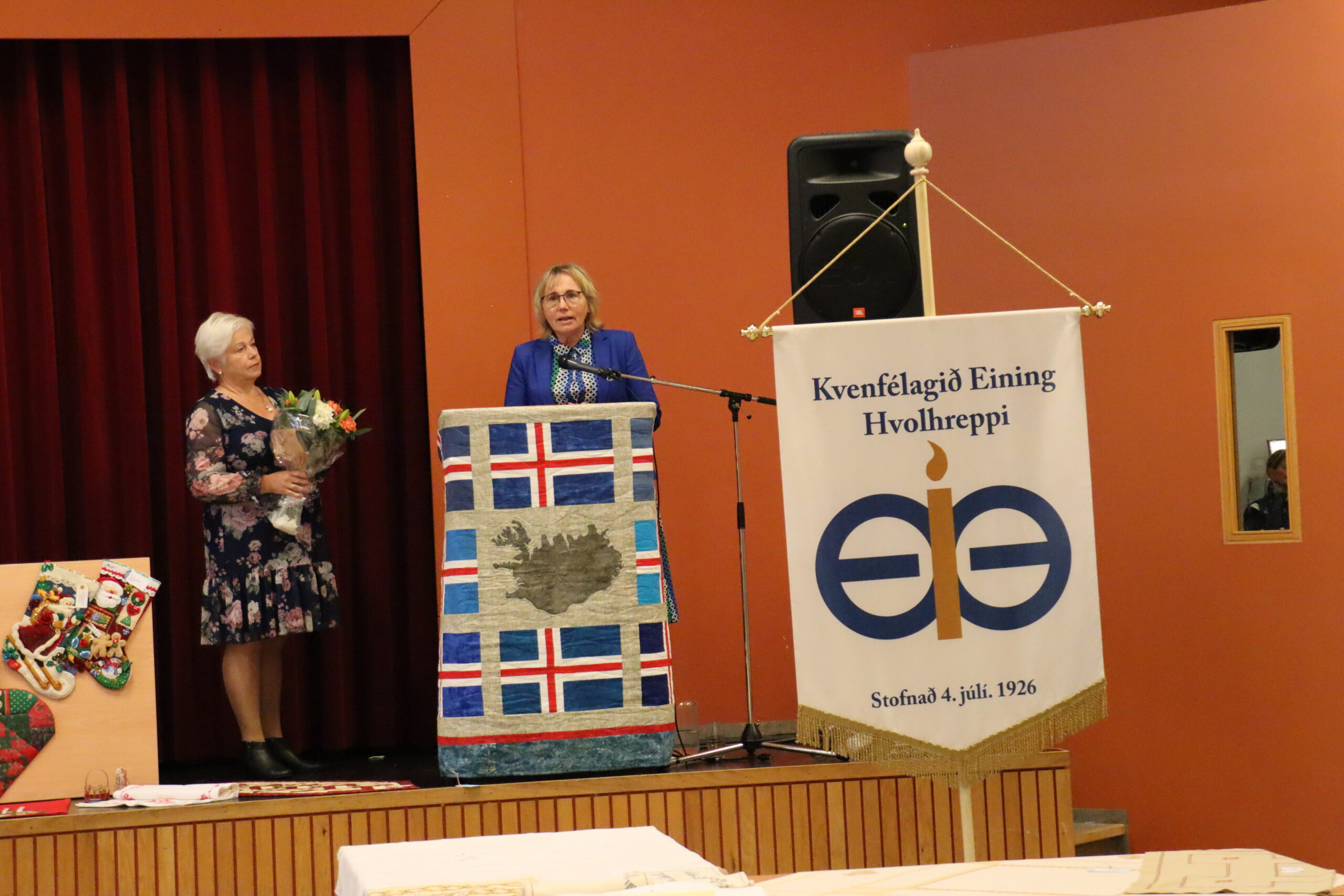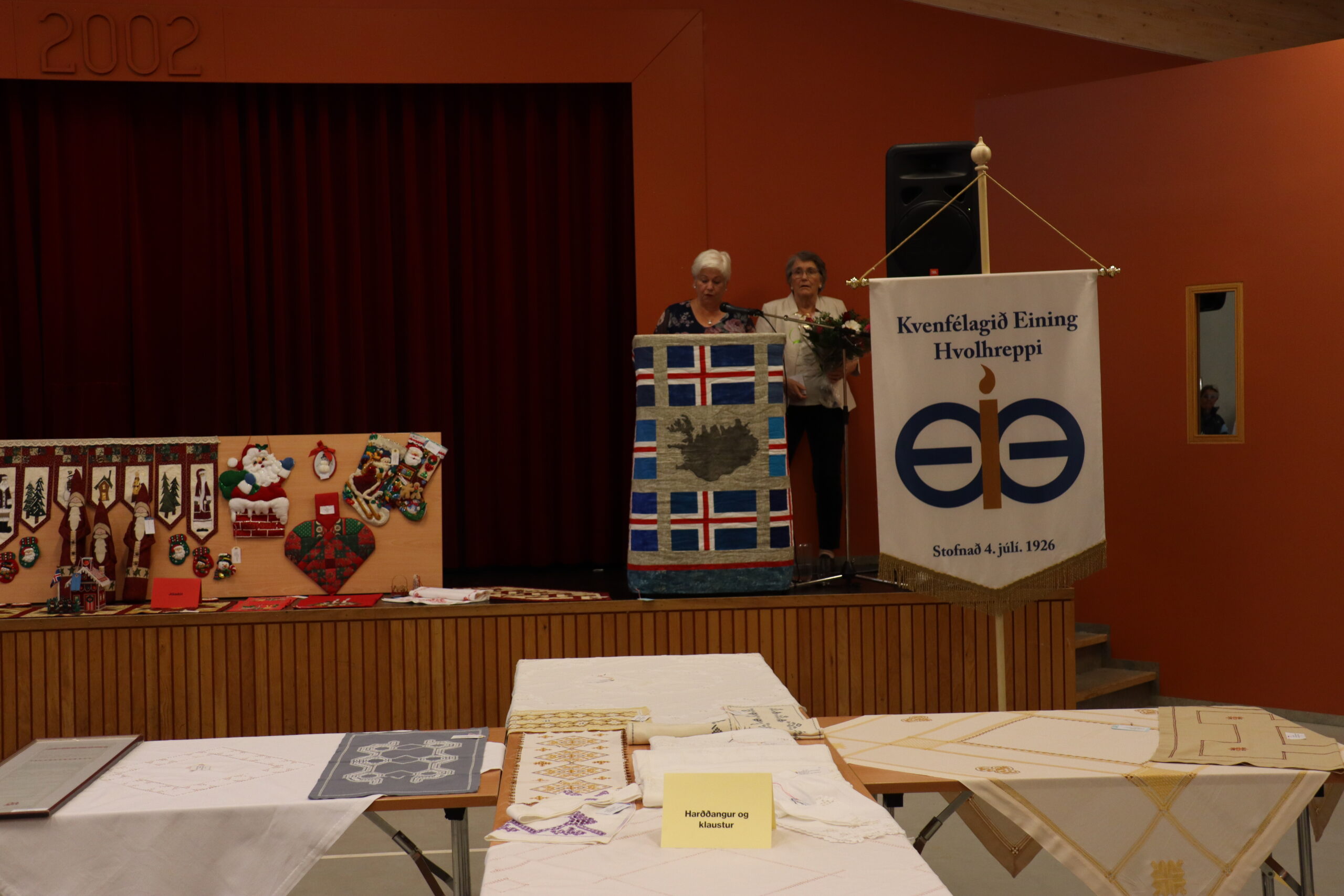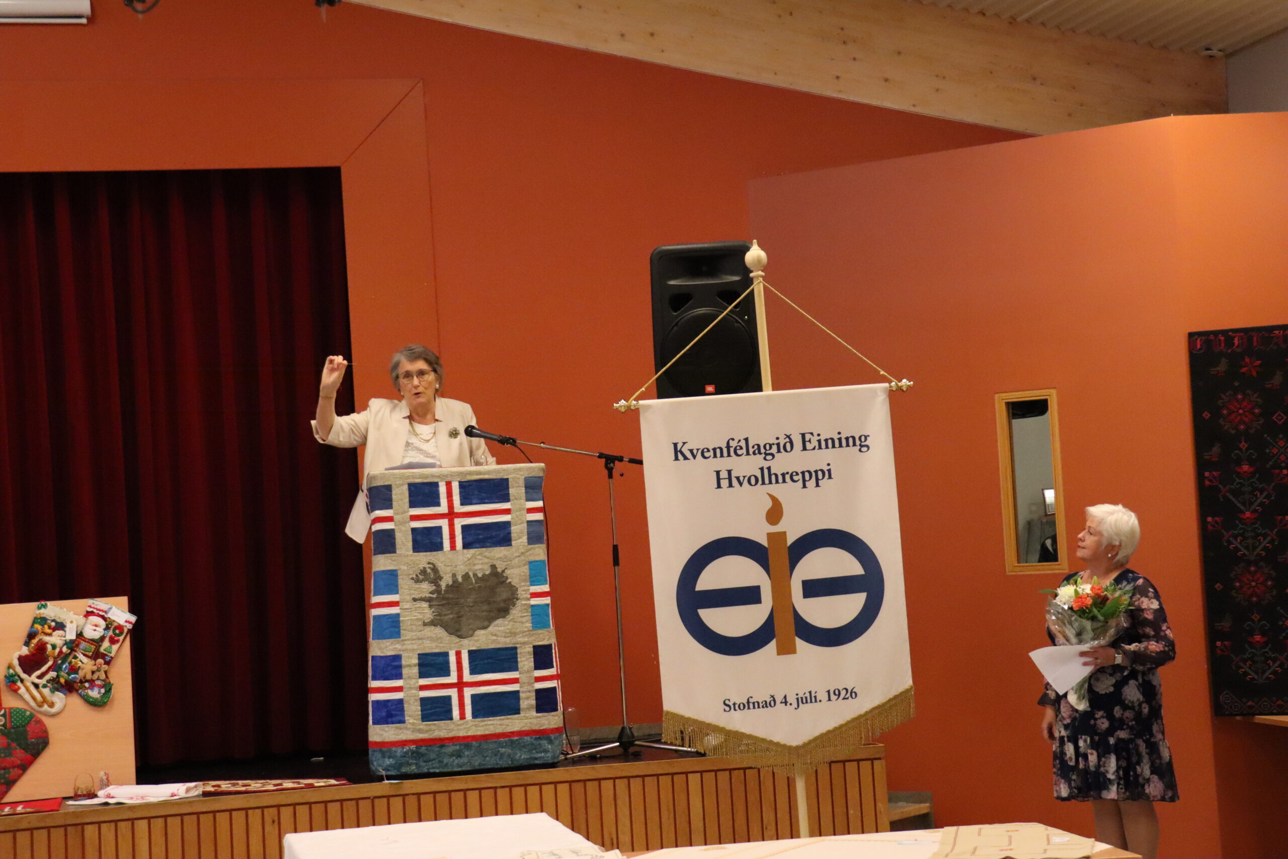 Margrét Guðjónsdóttir, formaður kvenfélagsins, hélt stutta ræðu í tilefni opnunarinnar og Margrét Tryggvadóttir sem átti hugmyndina að sýningunni kom með nál í pontu og sýndi gestum að margur er knár þótt hann sé smár og nálin hefur unnið kraftaverk í hundruð ára.