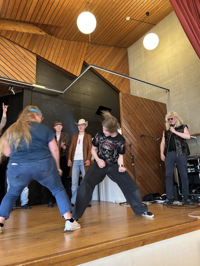Nokkrir drengir í Laugalandsskóla skoruðu á kennara í lúftgítarkeppni sem haldin var fimmtudaginn 16. maí og voru nemendur skólans í dómarasæti. Bæring Jón sá um að kynna keppendur til leiks en það voru þau Einar, Ragna, Sóley, Erla Berglind og Helga Sunna sem kepptu á móti þeim Degi, Sveini, Steindóri, Antoni og Grétari. Búið var að velja fimmlagabúta sem keppendur áttu nota til að sýna listir sínar og það gerðu þeir svo sannarlega, það var varla hægt að sjá að um áhugafólk væri að ræða. Metnaðurinn var svo mikill að það lá við slysi í eitt skiptið. Allt fór þetta samt fram í mesta bróðerni og verður vonandi að föstum lið hjá okkur.