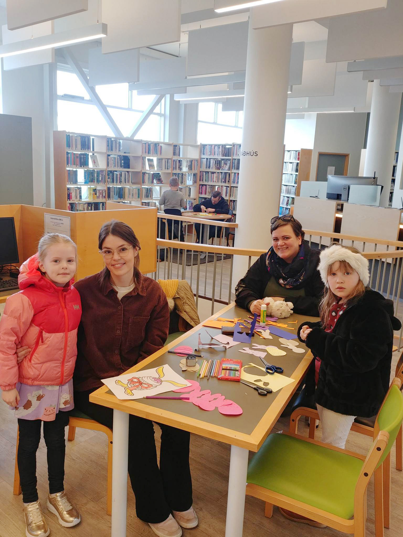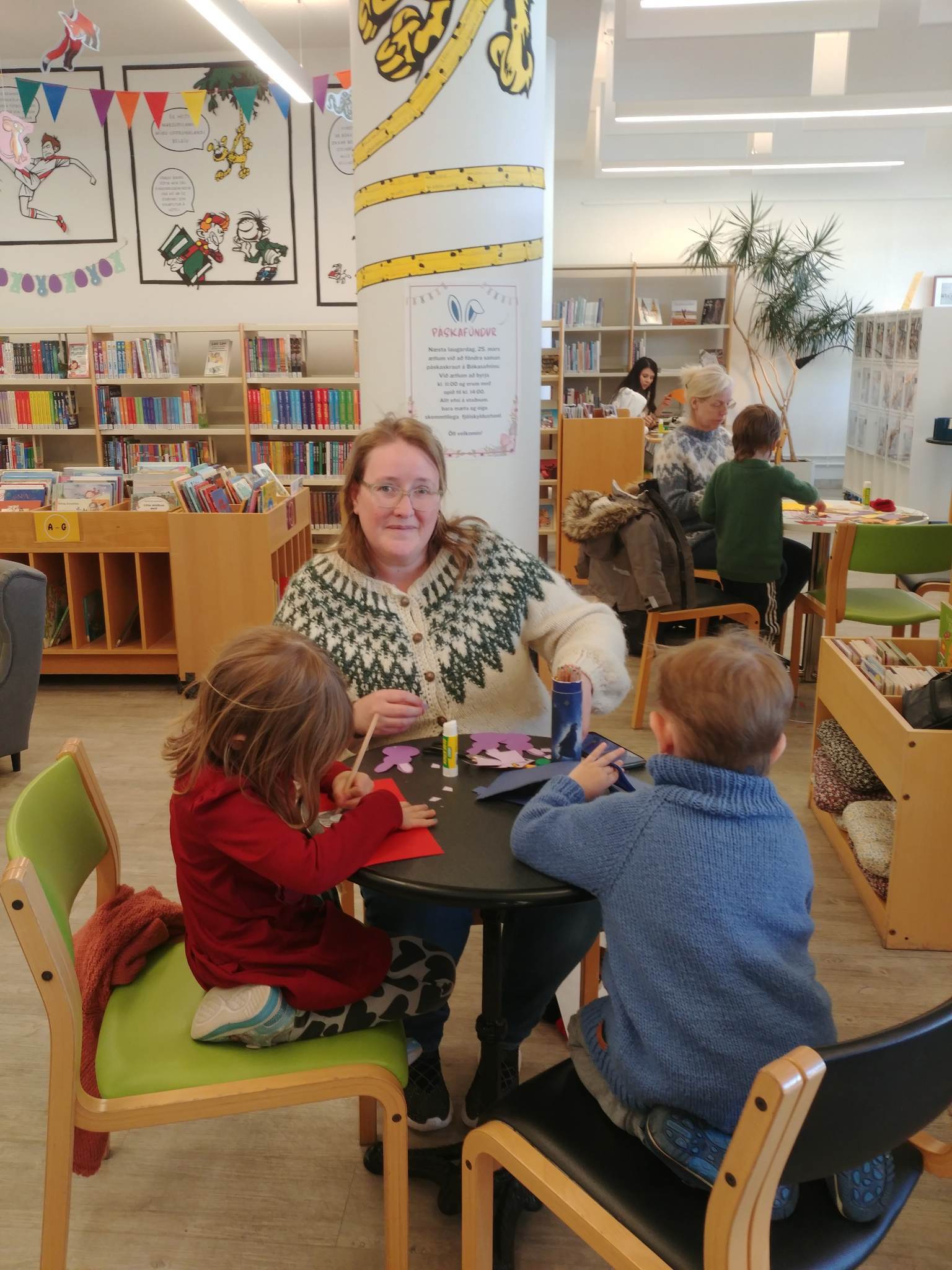 Síðasta laugardagsmorgun var mikið líf og fjör í bókasafninu á Selfossi þar sem fjölskyldum var boðið að mæta og föndra saman í tilefni páskanna. „Það er alltaf eitthvað skemmtilegt í gangi fyrir fjölskyldur á laugardagsmorgnum og nú síðast var föndrað á hverju borði og í hverju skoti. Þessar fjölskyldustundir á laugardögum njóta vaxandi vinsælda og eru orðnar fastur liður í menningarlífi Árborgar,“ segir Margrét Blöndal, deildarstjóri menningar- og upplýsingadeildar hjá Árborg í samtali við Dagskrána.