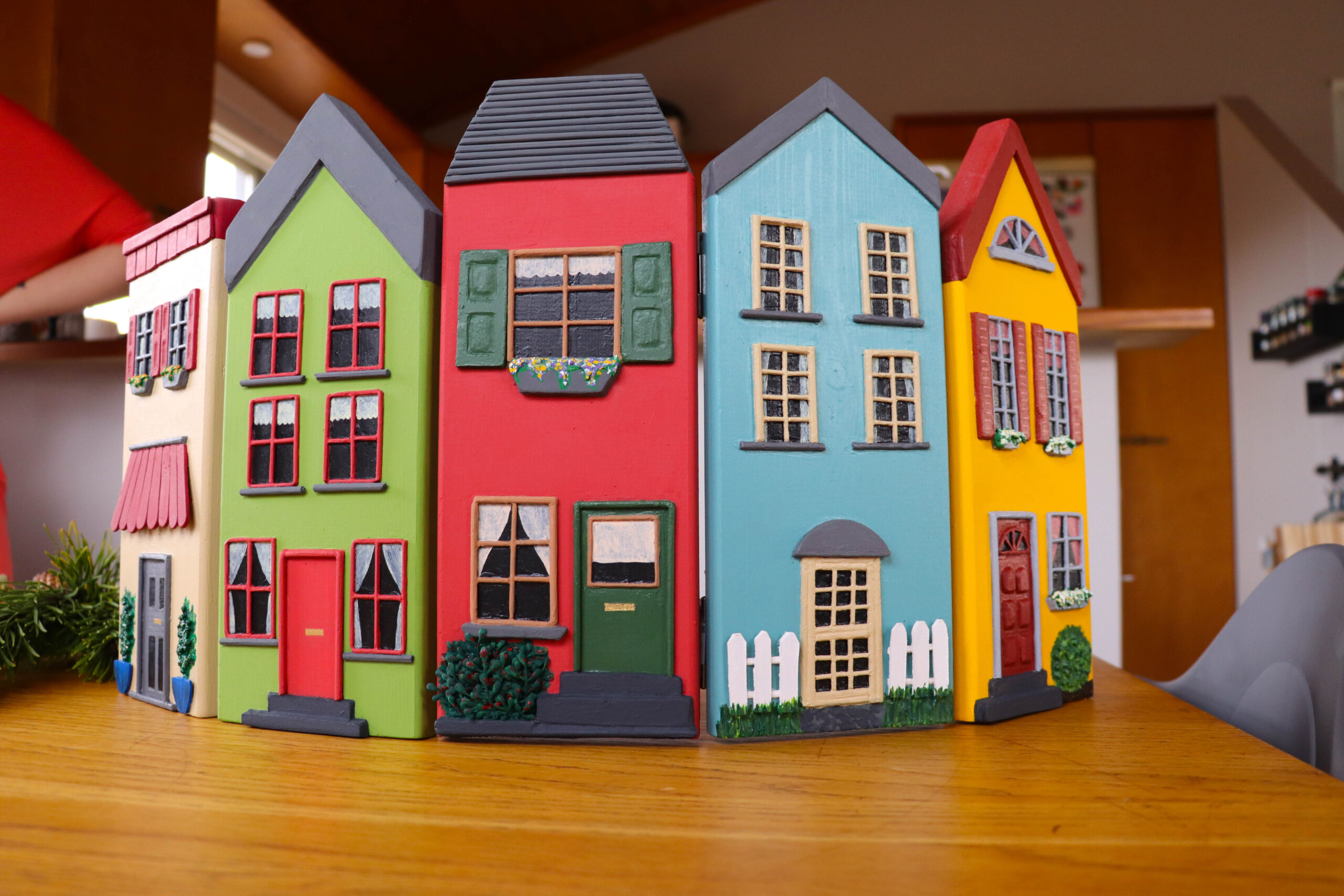 Það yrði seint sagt að Jóhanna myndi deyja ráðalaus, en fjölmargt á heimili hennar hefur hún steypt eða leirað sjálf, þar á meðal er fallegur ísbjörn sem hún leiraði sem þjónar því hlutverki að halda niðri stöng sem opnar fyrir útblástur úr arninum á heimilinu. Jólaþorpið úr Costco keypti hún fyrir nokkrum árum: „Ég er búin að horfa á það lengi, mér fannst bara, æi fólkið [í jólaþorpinu úr Costco] var bara ljótt,“ segir Jóhanna og hlær. En hún tók sig til, tók allt í sundur, glerin úr húsunum og málaði allt upp á nýtt.