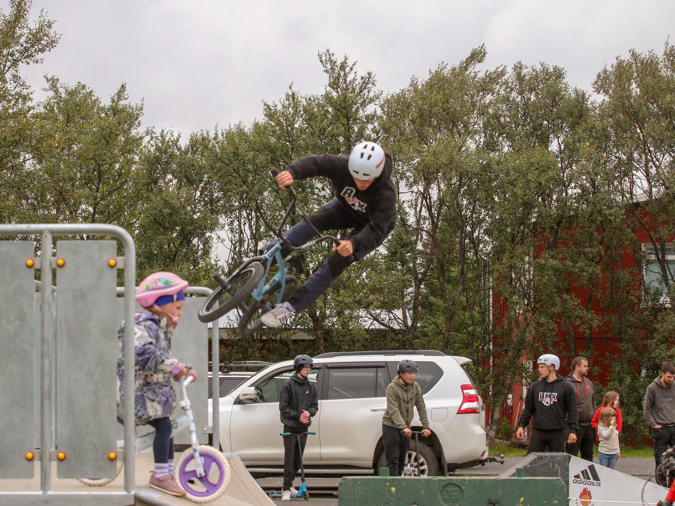 Brettagarður var opnaður á Hellu og er hann staðsettur við íþróttahúsið á Hellu. BMX Brós komu og héldu sýningu og kennslu sem var virkilega vel sótt. Mynd: Rangárþing Ytra